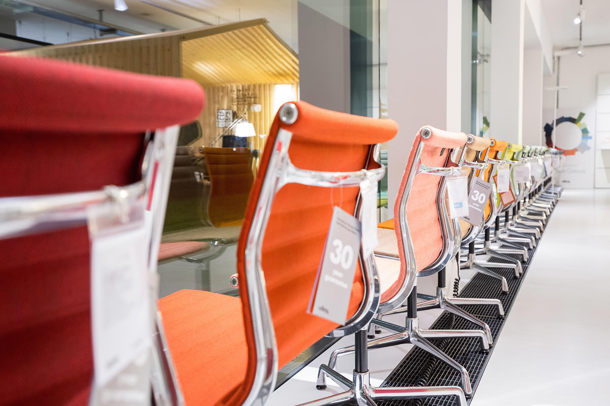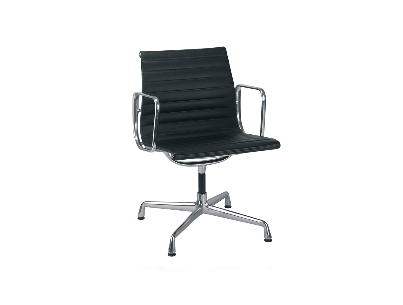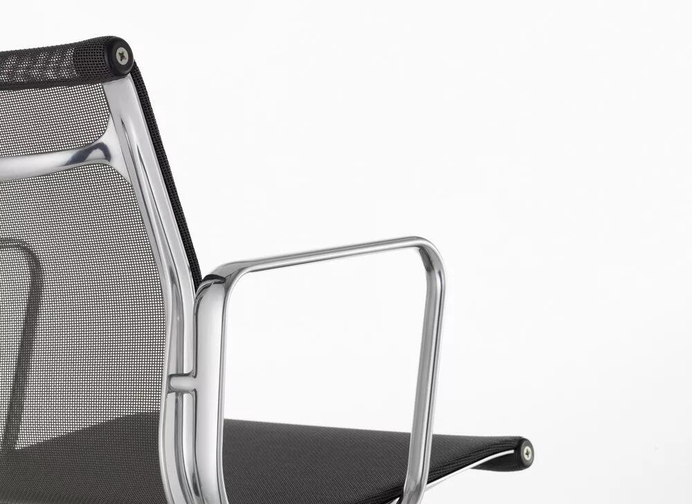 Charles和Ray Eames的铝椅EA 101,EA 103和EA 104非常适合与桌子组合使用:与铝组的其他型号相比,它们更轻,更高,更窄。 由于室内装潢具有多种柔和鲜艳的色彩,因此很容易找到适合任何餐厅的完美椅子。 这三种型号的不同之处在于基座的类型 - 固定或旋转 - 以及是否存在臂。