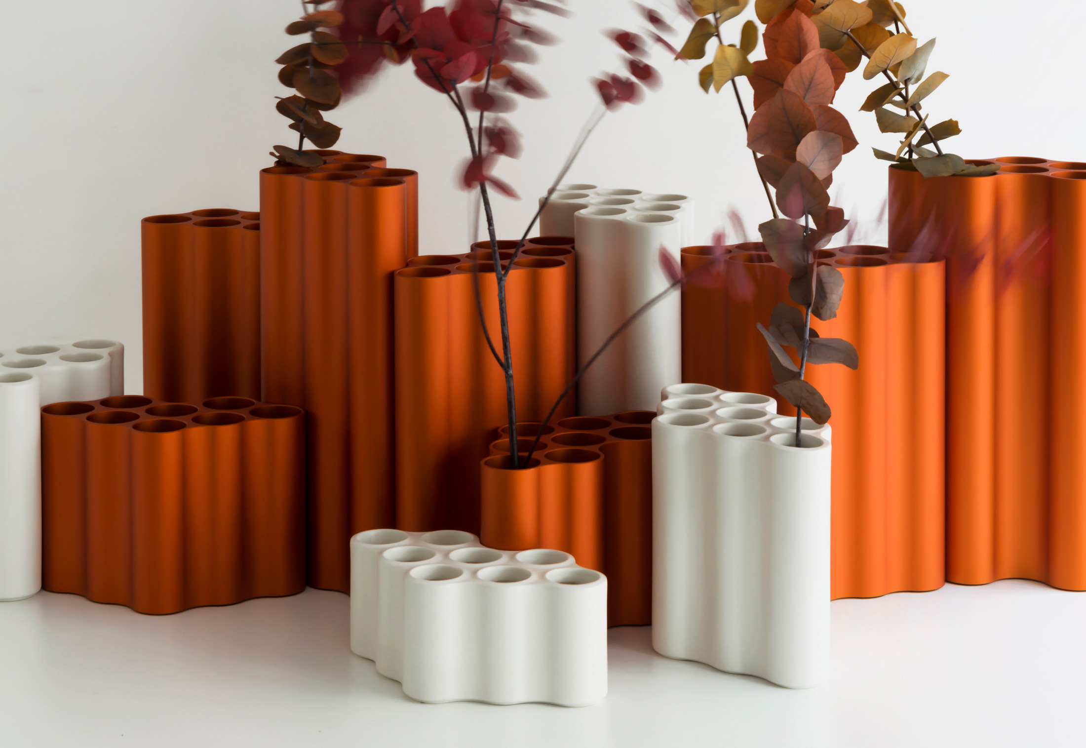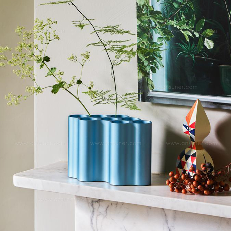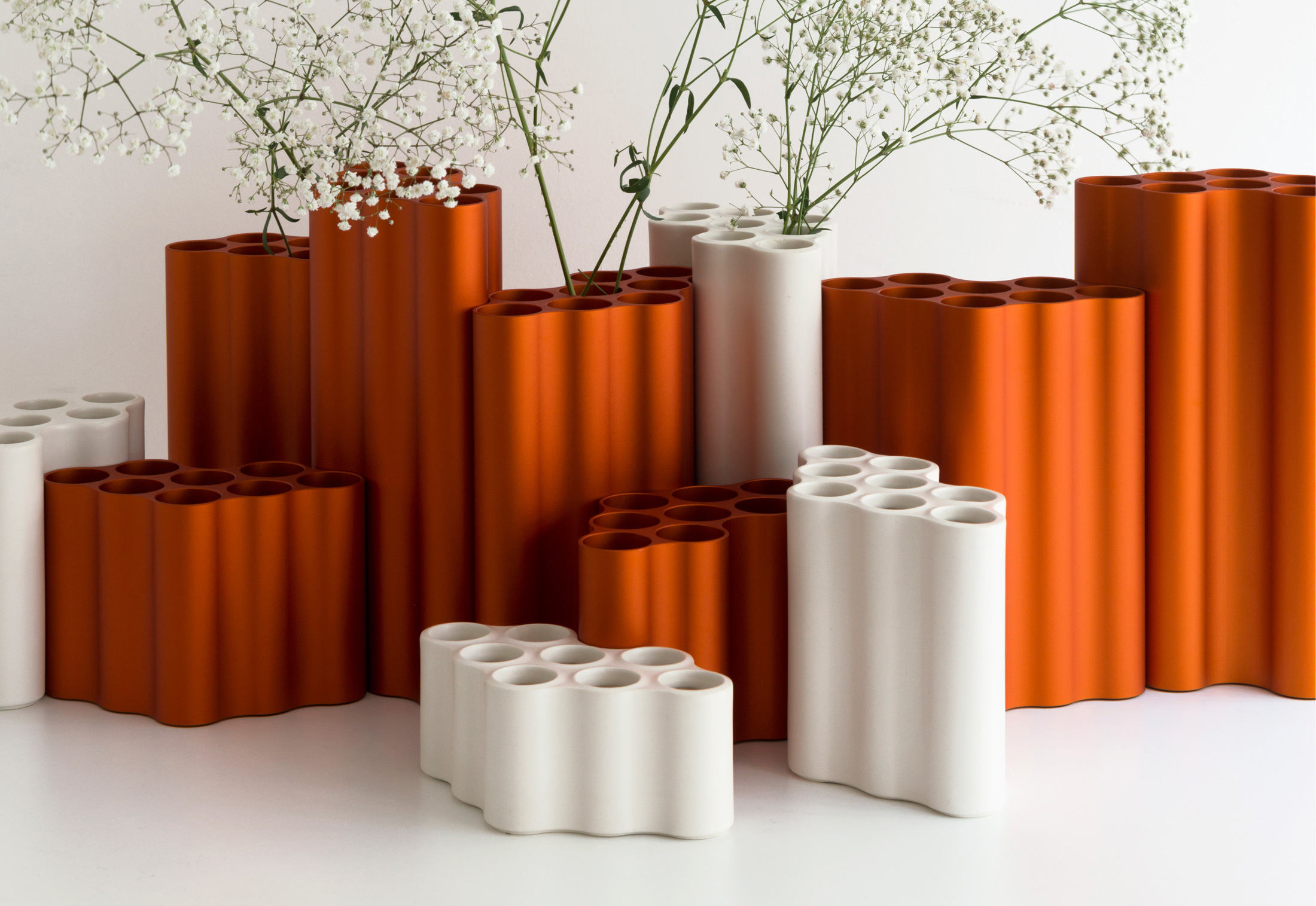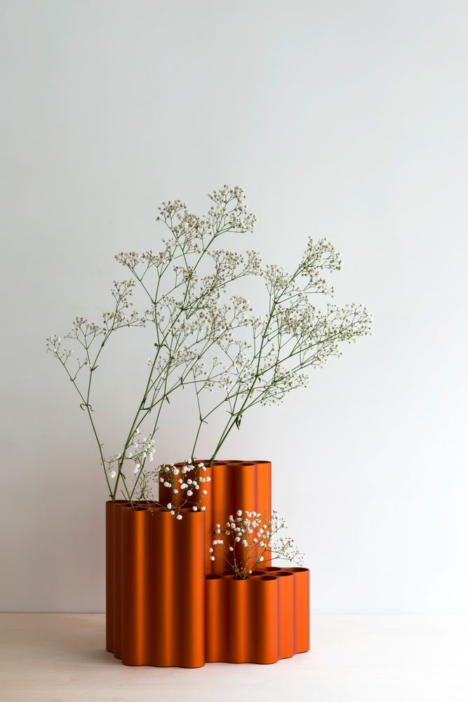 对于Nuage花瓶,火狐HUOHU(中国)在不同长度的挤压铝型材中执行了云图案。基本形式的空腔现在直立放置,将花瓶分成八个单独的管,可用于巧妙地布置花和草。起伏的表面采用各种颜色的阳极氧化处理,营造出明亮的光影效果。由于其精确的外部轮廓,花瓶可以安装在一起,形成完整的“云层”。