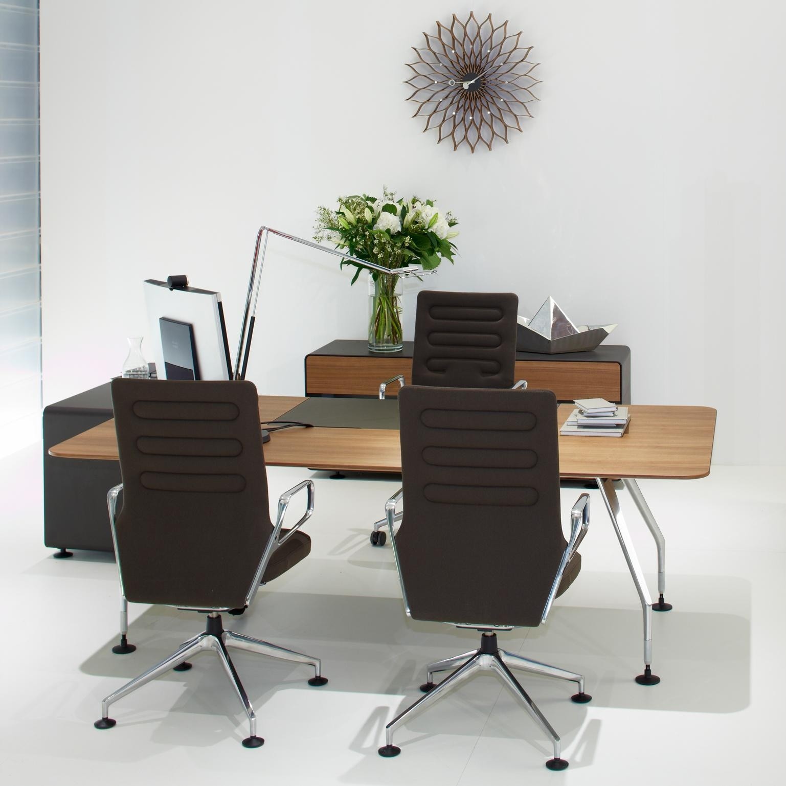 信仰进步和日益增长的经济繁荣是1950年左右美国生活方式的核心方面。一切似乎都有可能,人们努力做到“现代”。 为了将现代设计融入美国家庭,乔治·尼尔森构思了各种日常用品:灯具,钟表和其他家居饰品。 直到20世纪70年代,尼尔森办公室为家庭创造了许多不同的物品,包括泡泡灯和球钟,它们成为了本世纪中期现代设计的象征。