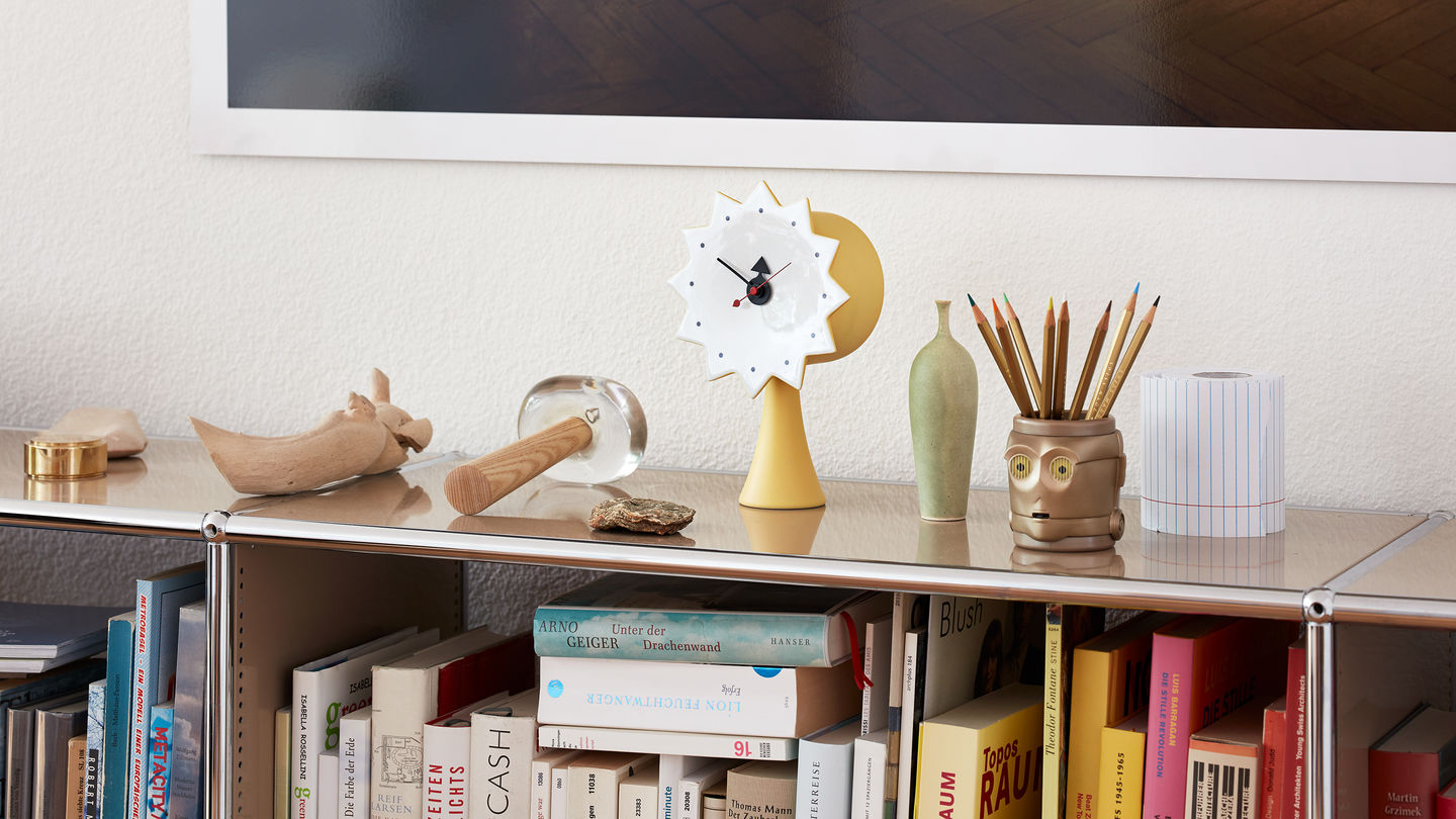 信仰进步和日益增长的经济繁荣是1950年左右美国生活方式的核心方面。一切似乎都有可能,人们努力做到“现代”。 为了将现代设计融入美国家庭,乔治·尼尔森构思了各种日常用品:灯具,钟表和其他家居饰品。 直到20世纪70年代,尼尔森办公室为家庭创造了许多不同的物品,包括泡泡灯和球钟,它们成为了本世纪中期现代设计的象征。
