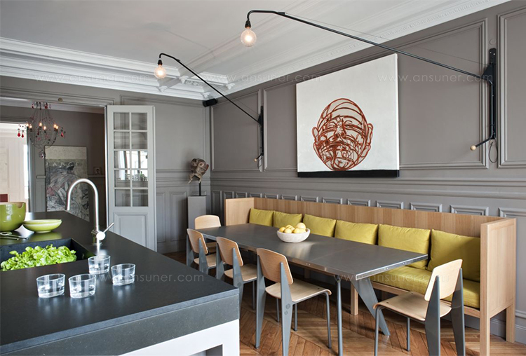 Potence壁灯是JeanProuvé的纯粹杰作之一。 减少了必需品 - 一个灯泡和一个旋转壁挂 - 长摆臂壁灯由粉末涂层管状钢制成,带有山毛榉木手柄。 灯由调光器控制,并配有灯泡。