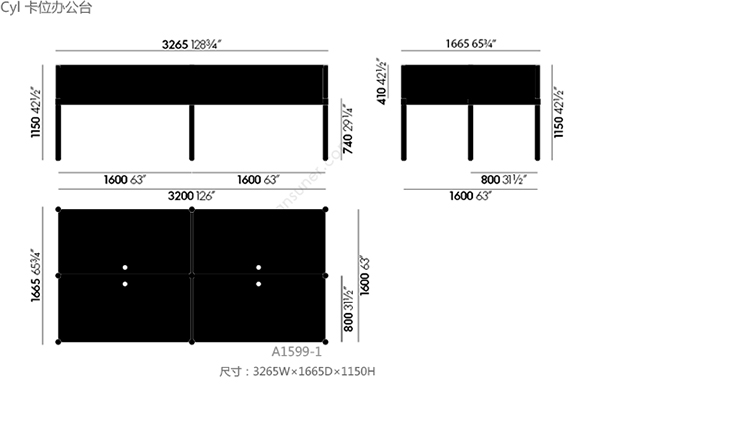 Cyl 卡位办公台 系列尺寸/示意图