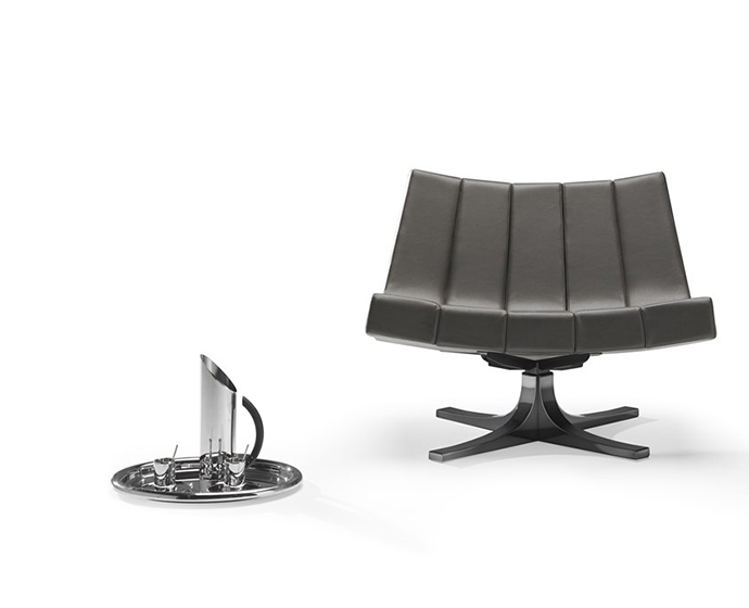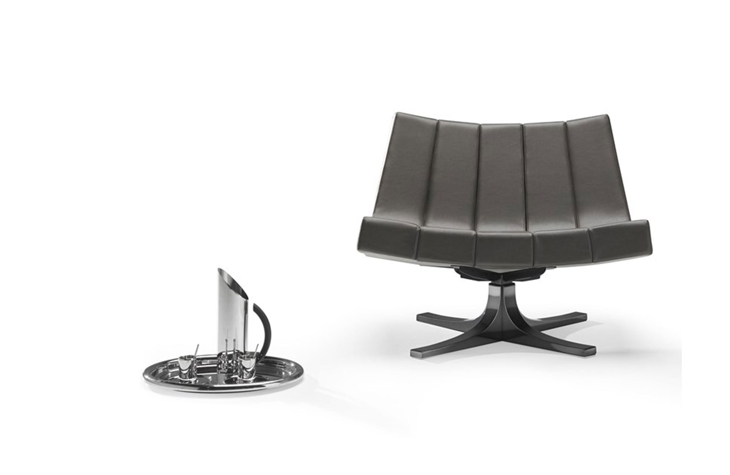 包括5个不规则的软垫部分。内部框架由不同密度的泡沫覆盖,更加舒适。四足金属脚。表面处理:金属色,镀铬。室内装潢,采用Tech Leather。