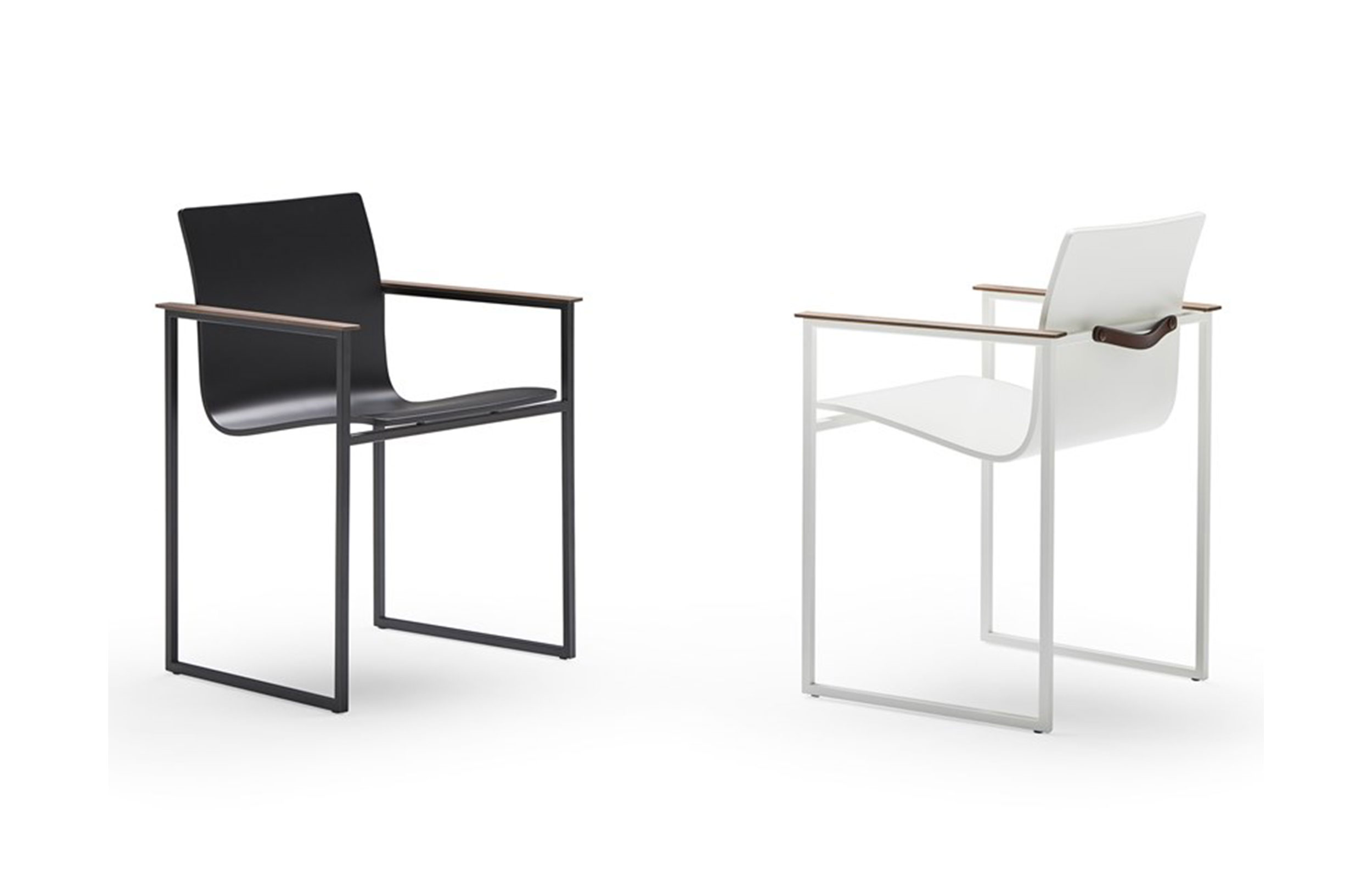 带扶手的雪橇漆椅 COPENHAGUE是涂漆鞋椅子与收集的涂漆的金属框架和核桃臂BlackTone的JMM