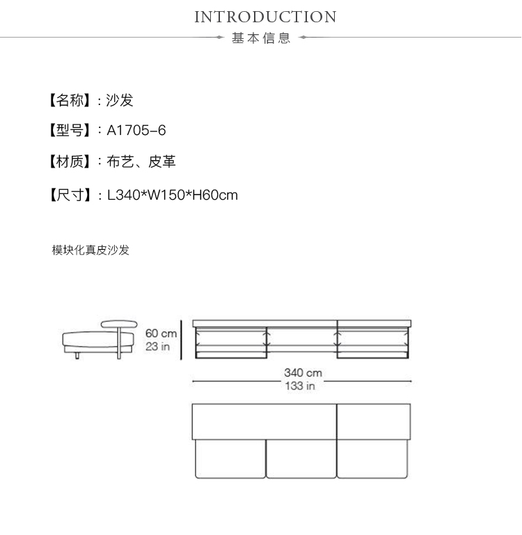 L340*W150*H60cm