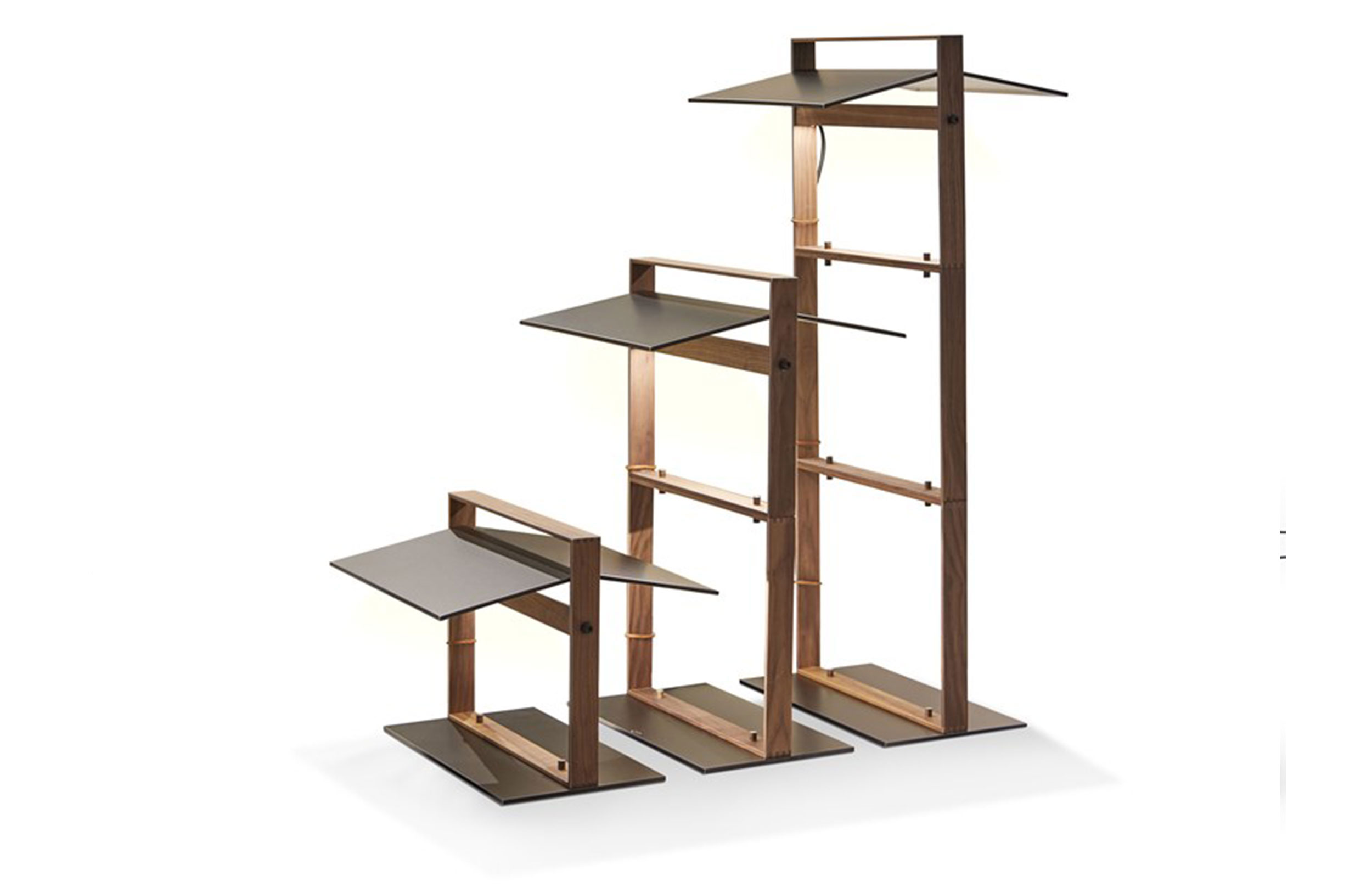 障子窗帘落地灯。实木模块化结构,金属底座和遮阳板.LED照明。