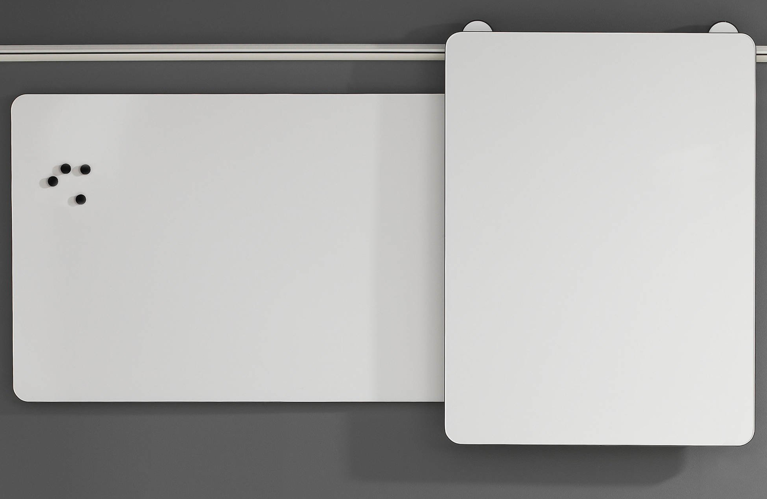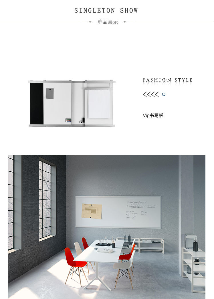 VIP创建了一个框架,可以充分利用您的会议/教学室。60毫米宽的铝型材创造了一个独特的,不间断的水平线,使板保持在适当的位置。可以根据需要沿着轨道移动板。VIP是一个灵活,优雅的系统。VIP书写板系统包括可在轨道上横向移动的柔性书写板和活动挂板。墙轨由银阳极氧化铝制成,顶部有单轨或双轨。订购长括号以使某些电路板重叠。还有一个壁挂式书写板。白板具有E3书写表面和特有的银色阳极氧化框架。