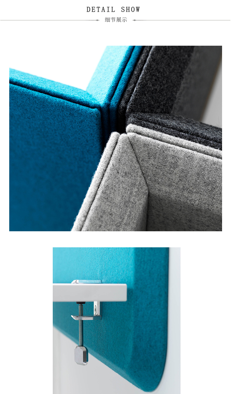 Abstracta的Domo系列具有简约而经典的外观,具有许多智能细节。其独特的斜面边缘营造出独特的动感表现:斜面捕捉光线,在两个屏幕之间创造阴影和清晰的连接。桌面屏幕由安装在实木框架内的吸音填料组成。屏幕两侧均采用布料装饰。屏幕有两种型号,有方角或圆角。桌面配件由抛光铝制成。
