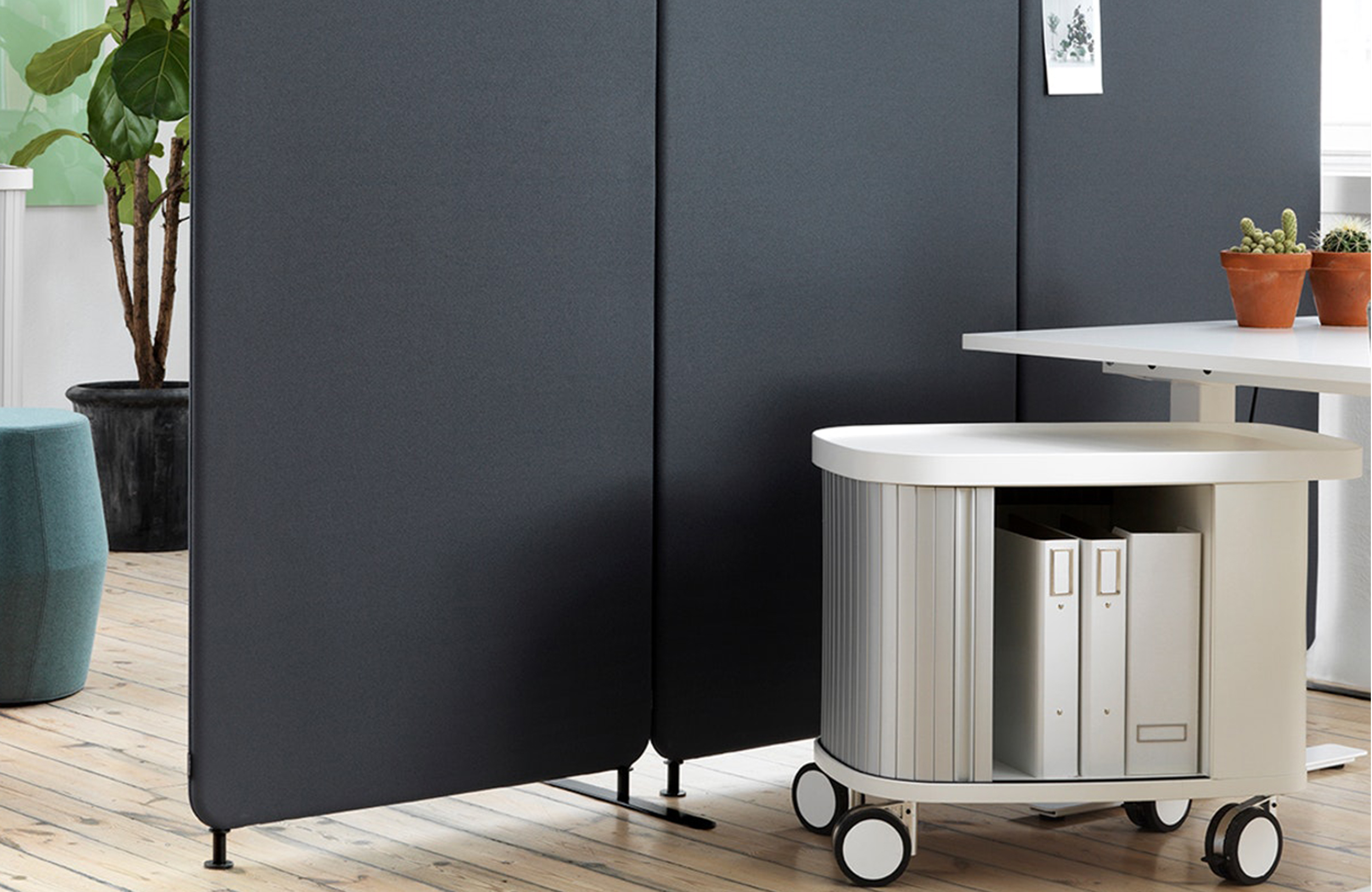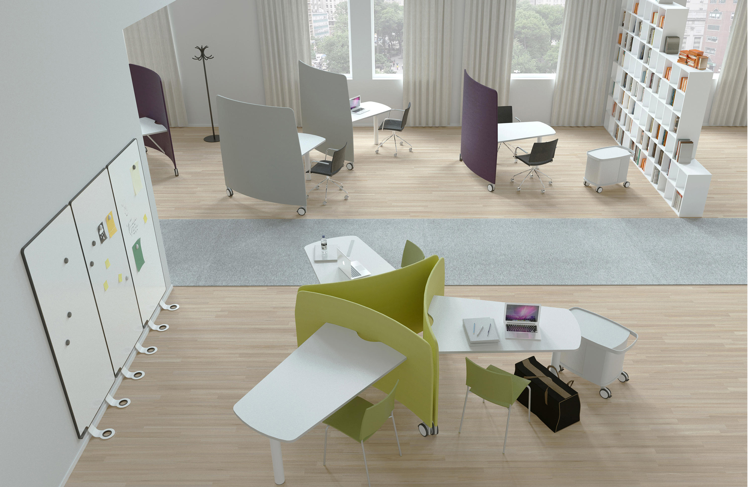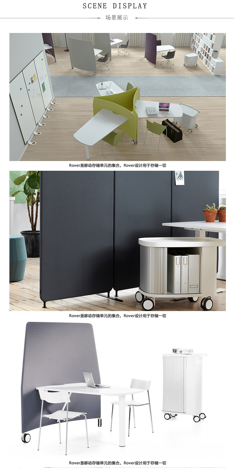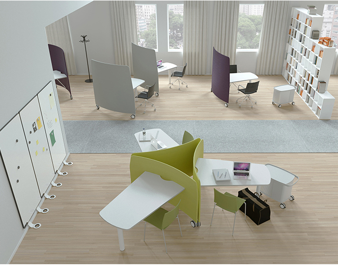 mobi是一个创新的移动工作站,允许用户重新配置他或她按需工作区。专为当今灵活的工作环境而开发,MOBI由工作面和锁止轮上的吸音隔板组成,因此很容易被一个人移动。组合单元可以创建多种配置,从基于团队的协作安排到各个工作站。