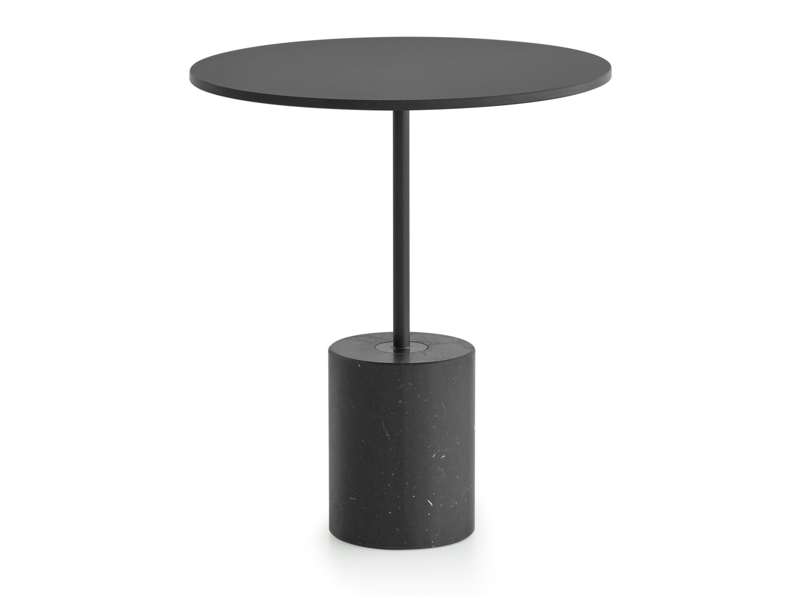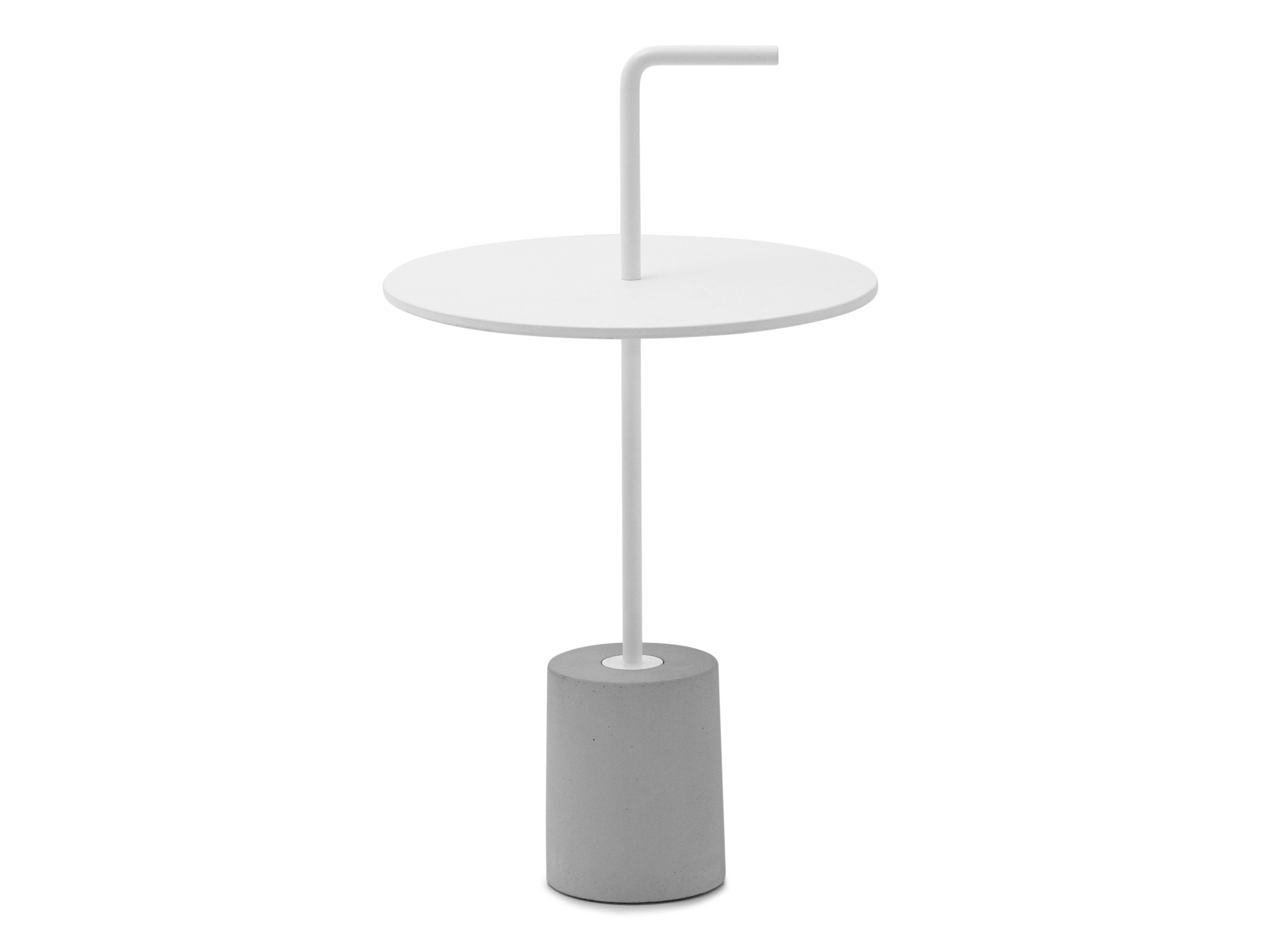 JEY.稳定且可移动。它可以作为一个顶部或便携式的桌子。它有两种不同的高度(45和50厘米)和四种不同的顶部,两种材料和两种颜色。它是一种小型的桌子雕塑,有大理石或水泥底座,管状柱以各种几何图形发展成一个形状的顶部,以一个手柄结束。手柄形状的弯管可以方便地移动桌子,特别是在高频区域(如办公室、酒店、酒吧、餐馆等),但也适用于当代居住环境。它可以与扶手椅、沙发、另一张桌子或另一张Jey相匹配。