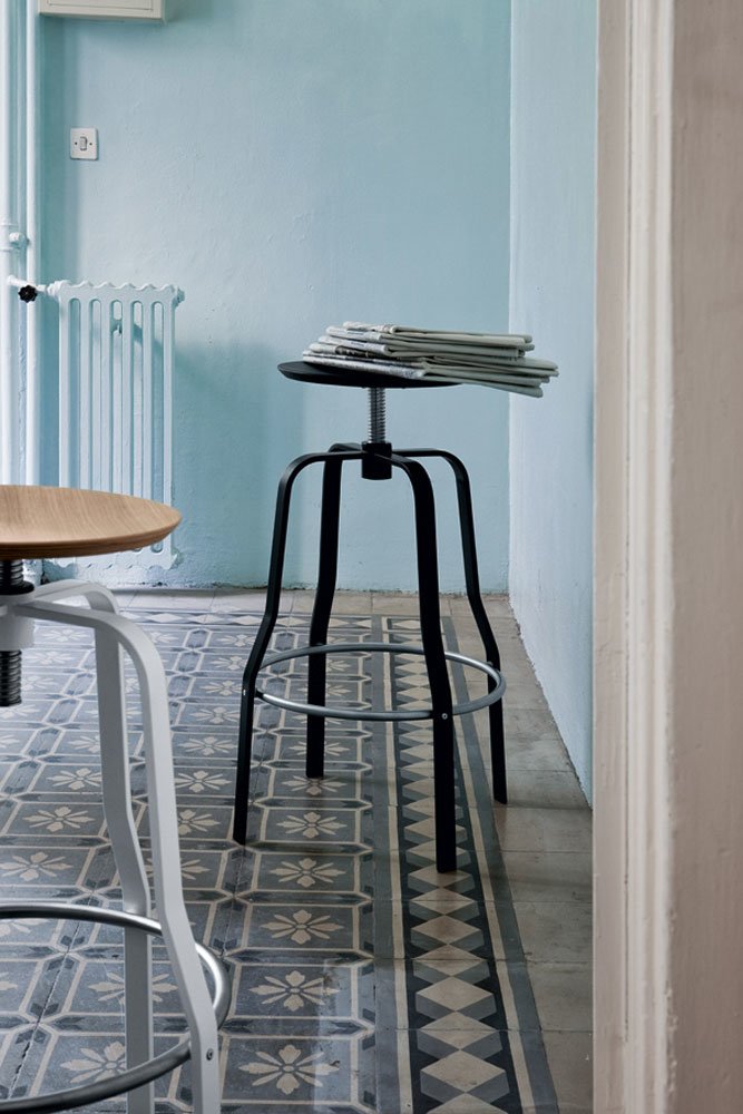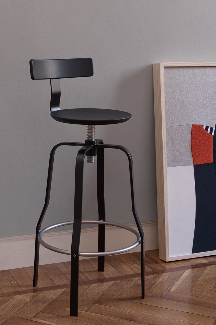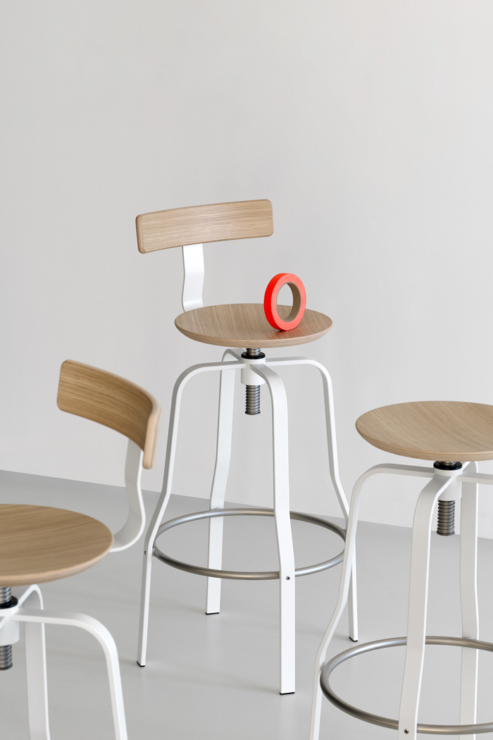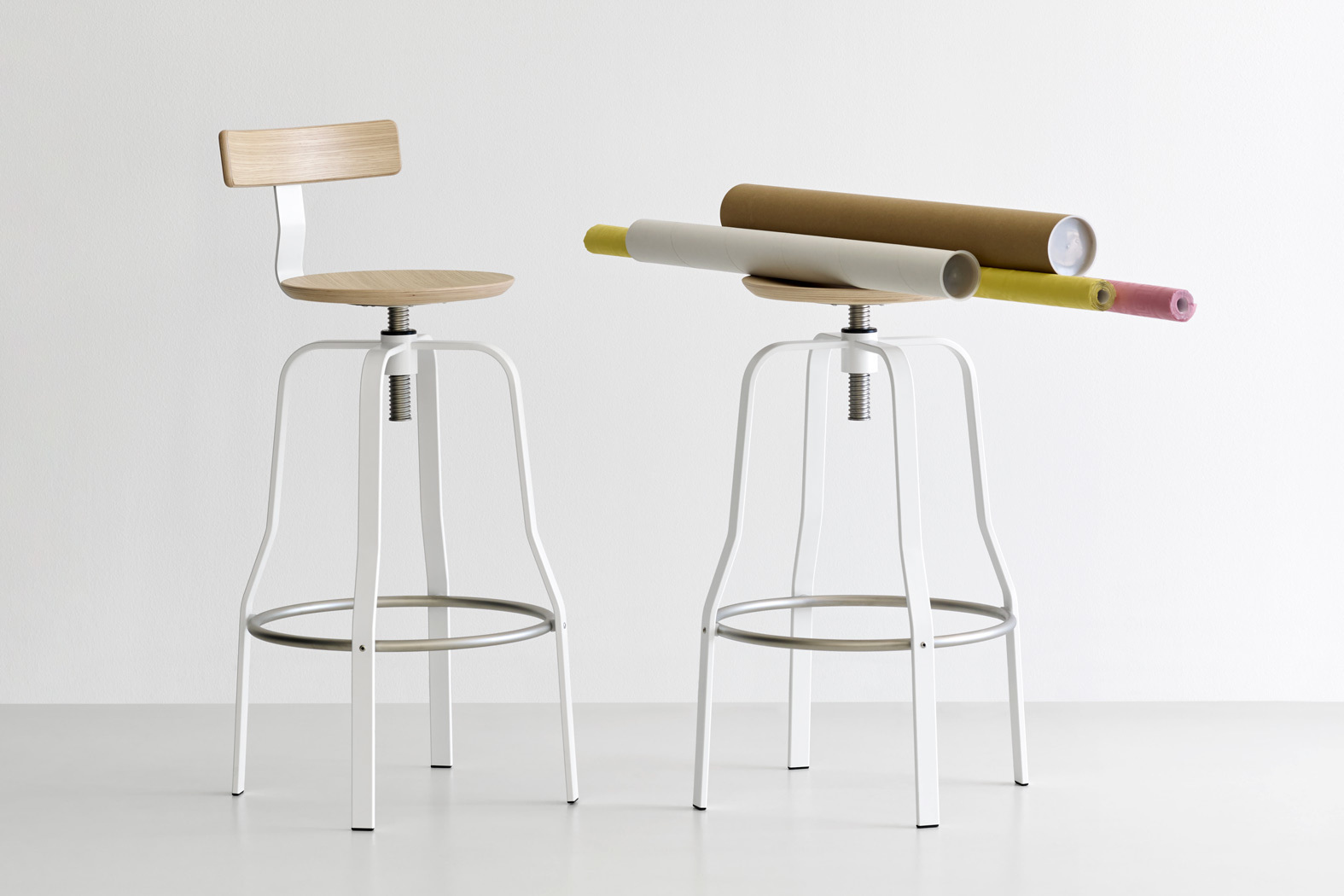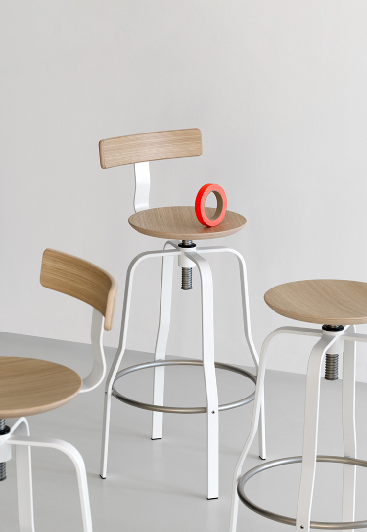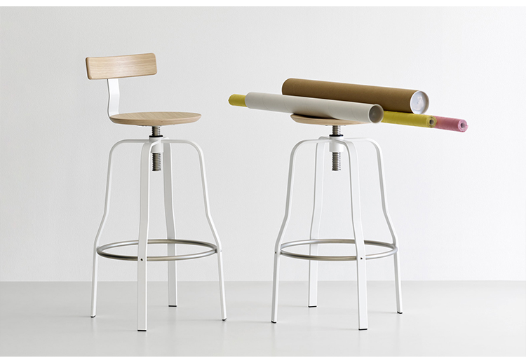 Giro回忆起美国的电影院和咖啡馆,但它有意大利轻盈的外观。由一个金属带制成,它的形状是一个轻轻凹的圆圈,可以容纳座椅。它的螺丝很灵活,可以调节它的高度和舒适度