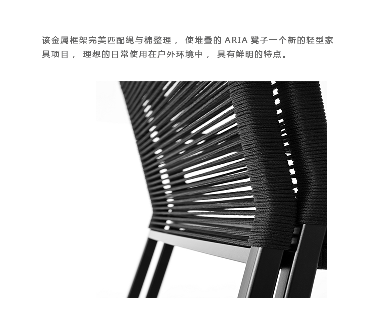 该金属框架完美匹配绳与棉质饰面,使堆叠的ARIA凳子一个新的轻型火狐官方网站项目,理想的日常使用在户外环境中,具有鲜明的特点。