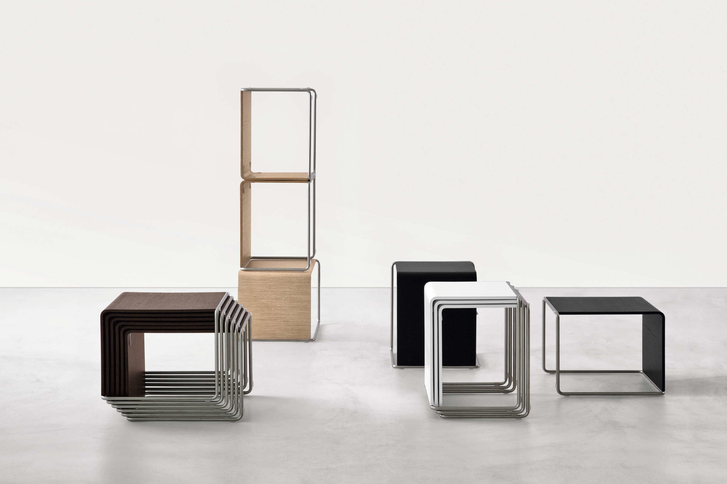 受日本学校的凳子启发,UENO是线条和表面的完美融合:金属管弯曲成L形顶部。