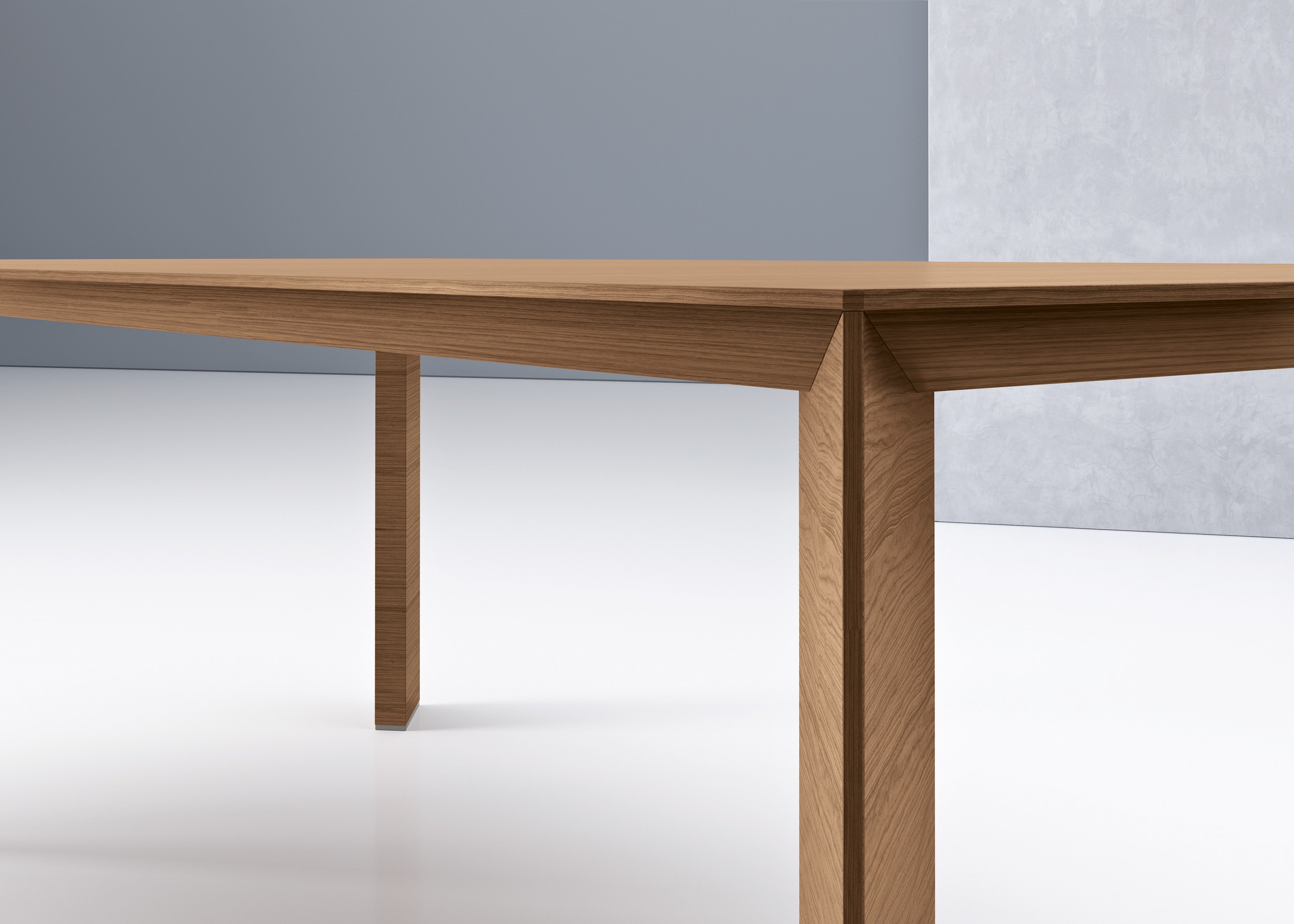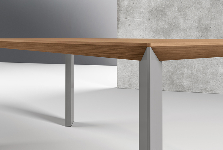 创新的设计带来独立的美观的外形。这款Paper的桌子拥有两个引人注目的设计元素,一是桌子边缘的底部是向内倾斜的,使其表面优雅轻盈(桌面厚度为38毫米);二是桌腿呈细长的三菱柱状。这两个设计都可以使整个桌子看起来线条鲜明,线性或者狭窄,这取决于角度的选择。