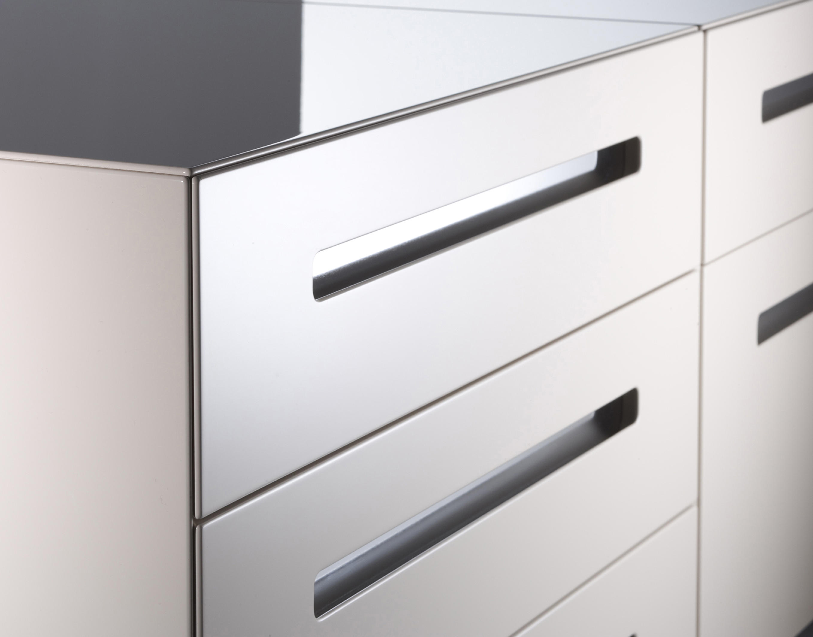 铬合金凹式把手让Lane极致品质感,座地柜有多种色彩选择,并可处理成亮光或哑光的表面,个性化组合。