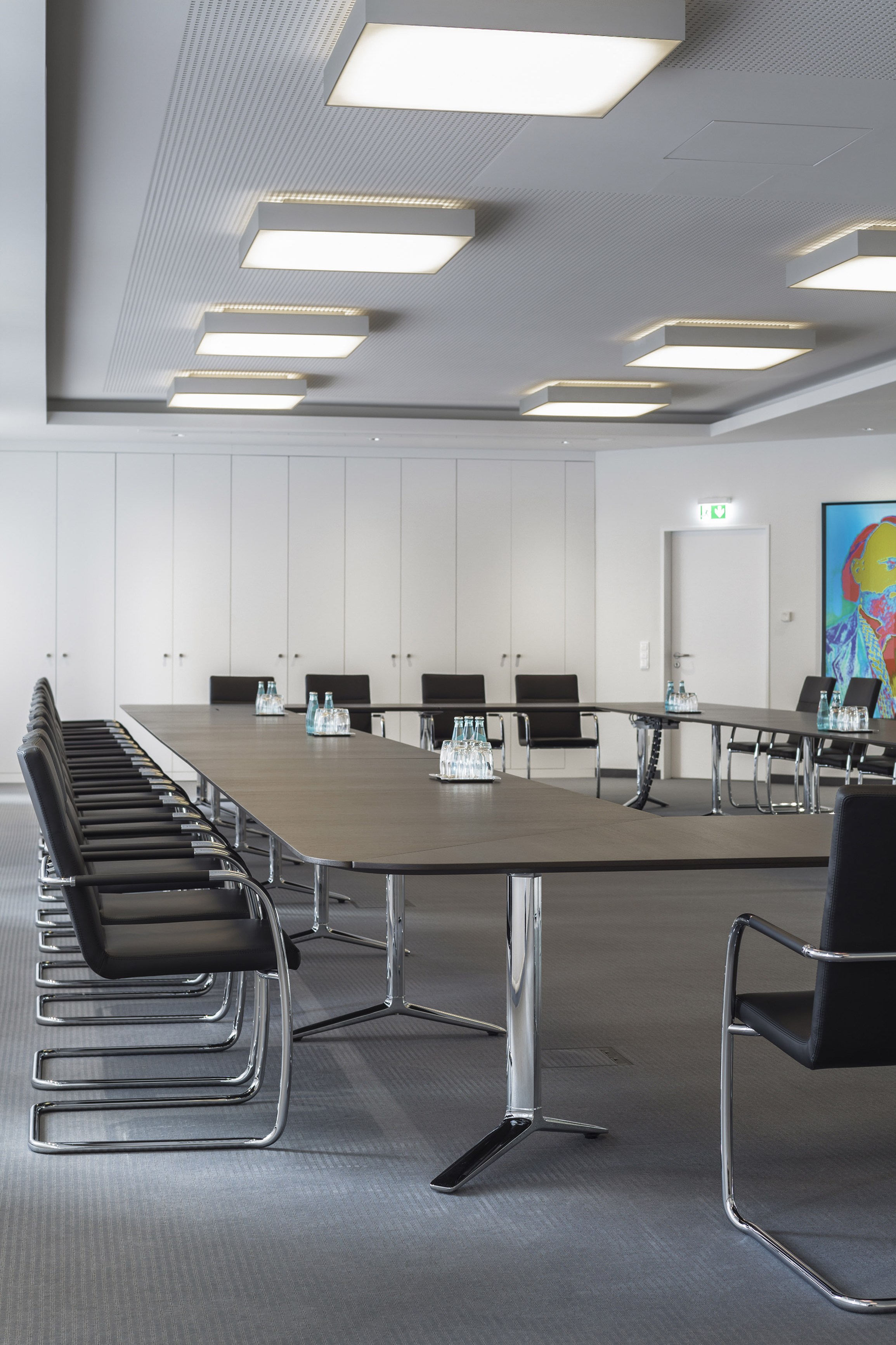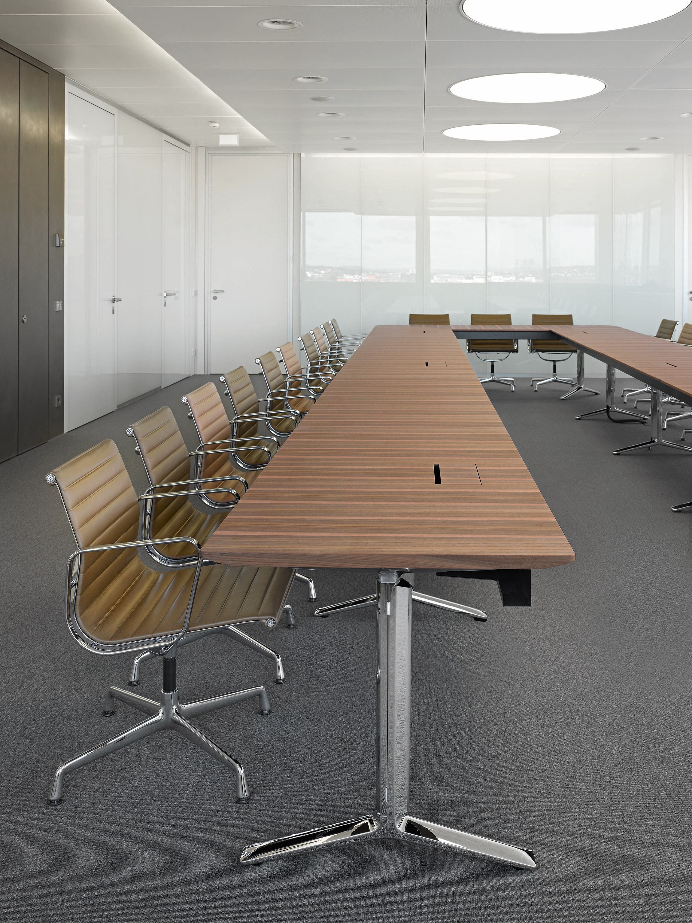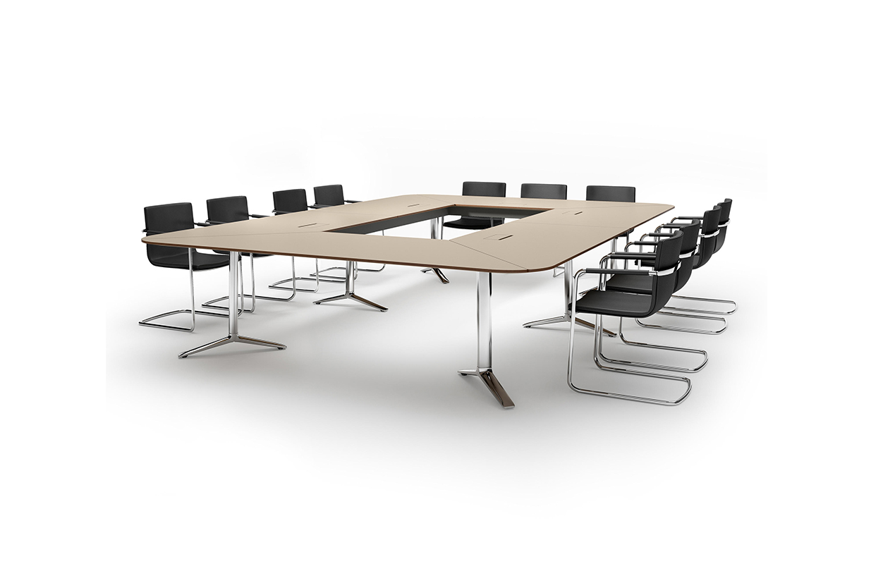 TALK会议桌的台架结构除了保证稳定性,以及最大化的腿部空间之外,它还能实现相邻两块桌面的巧妙连接。不仅如此,所有拼装和拆卸均无需任何工具,方便快捷。Talk系列应用广泛。无论会议、洽谈或培训,均可利用其高度模块化的整体结构与极强的空间“自适应性”,构建出不同的组合方式,以满足客户需求。
