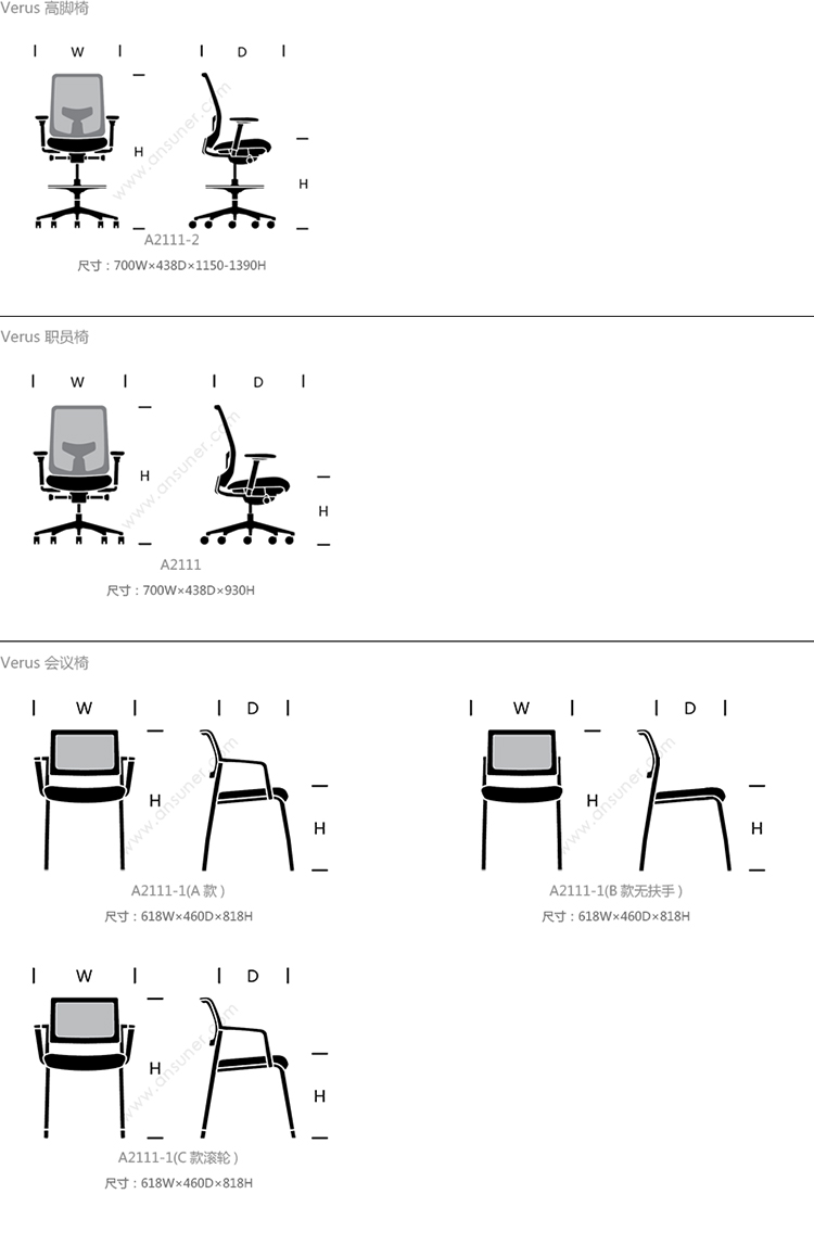Verus 高脚椅 系列尺寸/示意图