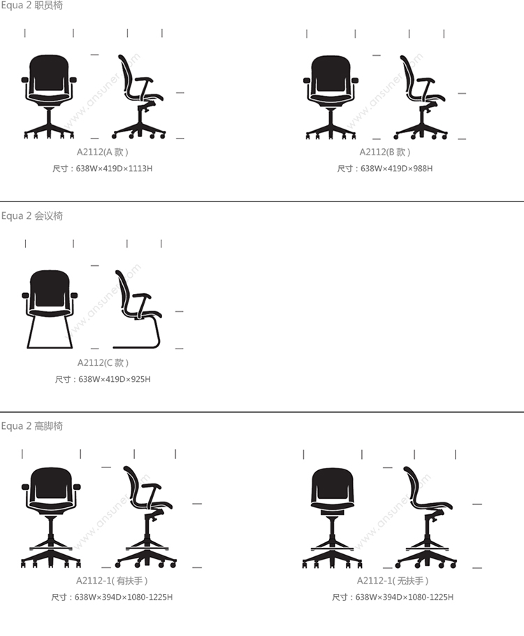Equa 2 职员椅 系列尺寸/示意图