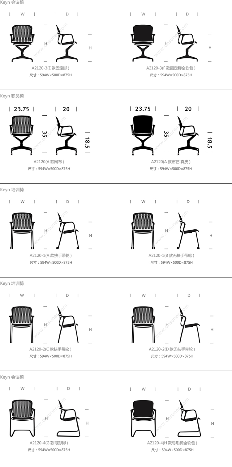 Keyn 会议椅 系列尺寸/示意图