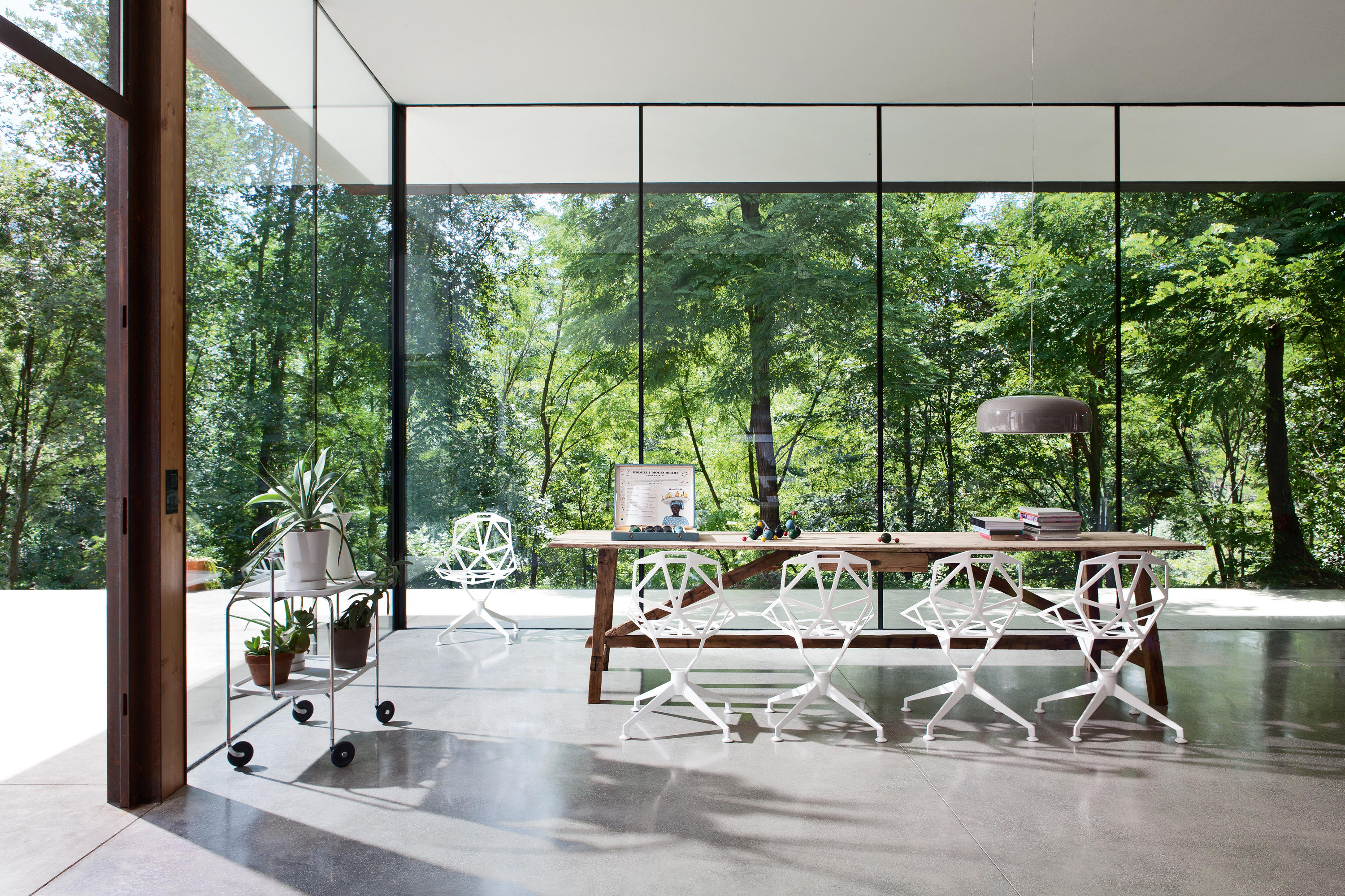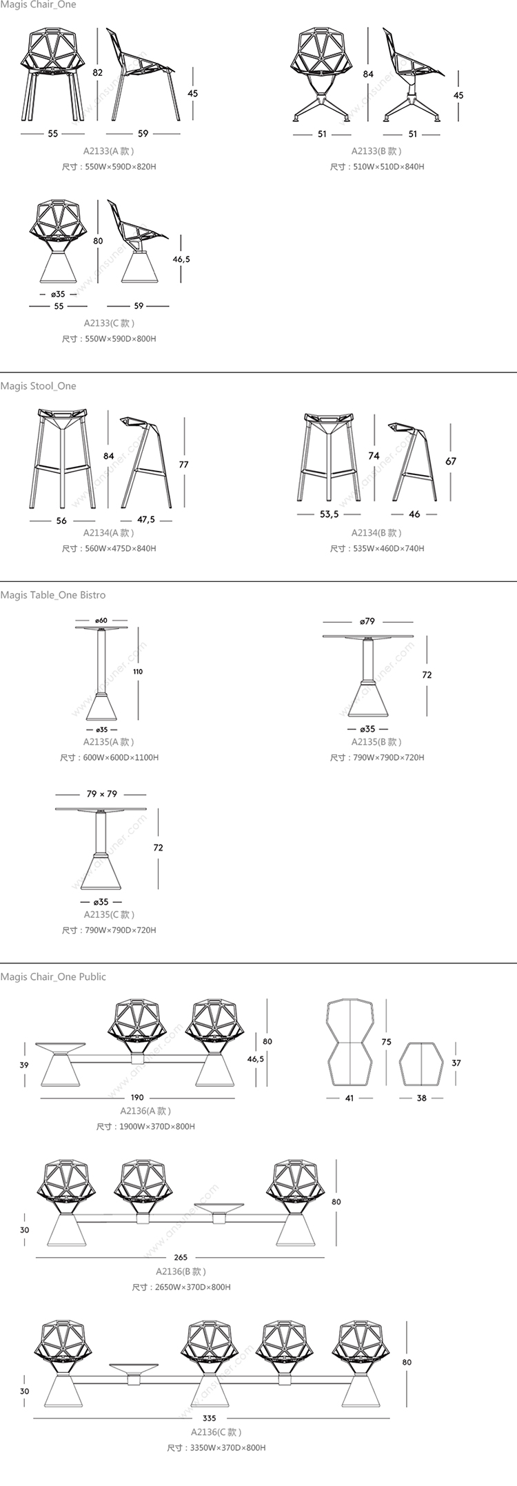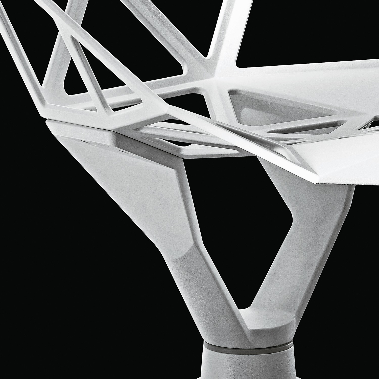最受瞩目的德国火狐HUOHU(中国)Konstantin Grcic 应邀为MAGIS 设计的Chair One(几何吧椅),是设计生涯中最具有标志的产品之一。办公椅体为模铸铝合金结构,经过氟化钛镀膜与塑料粉末涂布。椅子具有阻燃性、抗腐蚀性。适合室内及室外使用。以铝金属与钛金属制成的 Chair One,以多个平面以不同角度组合而成,建立起立体的外型。多个中空的三角型组合而成的座椅,不但令为用家带来强而有力的承托结构,而且还能在简单设计之中带出不一样的风格。这把椅子的惊人形象难免使人对它的舒适度产生疑问,但当你真正坐于其上,你会发现它实际上非常舒适,那些稀疏的网状结构能够极好地支撑不同体型的人体,后背上的把手也非常实用。当你知道Chair-One最初是被当作户外用椅而设计的,你会更加佩服Konstantin Grcic的缜密用心:极少的表面可以杜绝雨水,并且减少灰尘堆积,夸张的形态则令它能够在街道、建筑或自然的环境中拥有自己美学上的存在,而不是被环境所吞没。Konstantin Grcic花了三年时间设计Chair One,自2003年诞生以来,堪称Grcic精简主义风格的代表作。2006年,Chiar One为Konstantin Grcic赢得了德国政府的设计大奖。