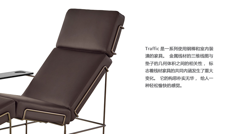 Traffic是一系列使用钢棒和室内装潢的火狐官方网站。金属线材的三维线图与垫子的几何体积之间的相关性,标志着线材火狐官方网站的共同内涵发生了重大变化。它的构思朴实无华,给人一种轻松愉快的感觉。精致的细节和精心设计的比例刺激了响亮的优雅。构造的内在逻辑创造了一种正式的语法,允许一些功能上的衰落形成交通集合:一张扶手椅,一张两个座位的沙发,一张小长椅(它也用作脚凳),贵妃椅。