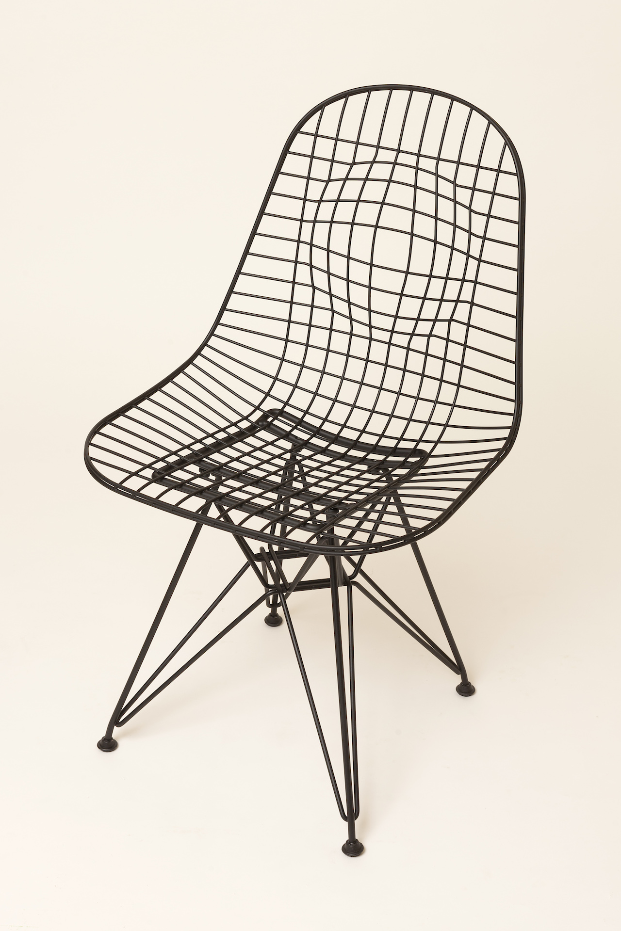 DKR 單椅結合了 Wire Chair 的網狀金屬椅座搭配鐵塔椅腳。