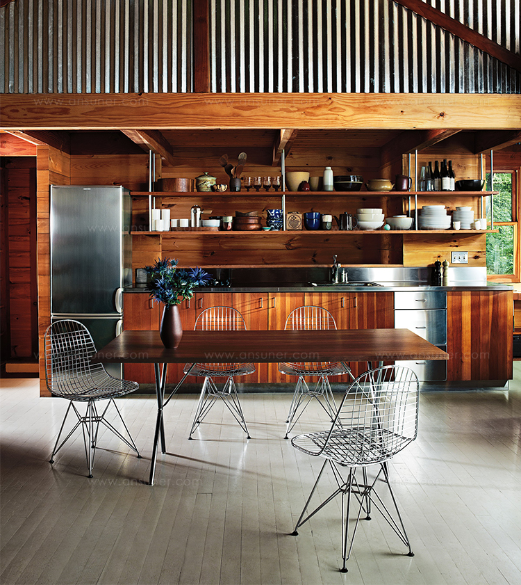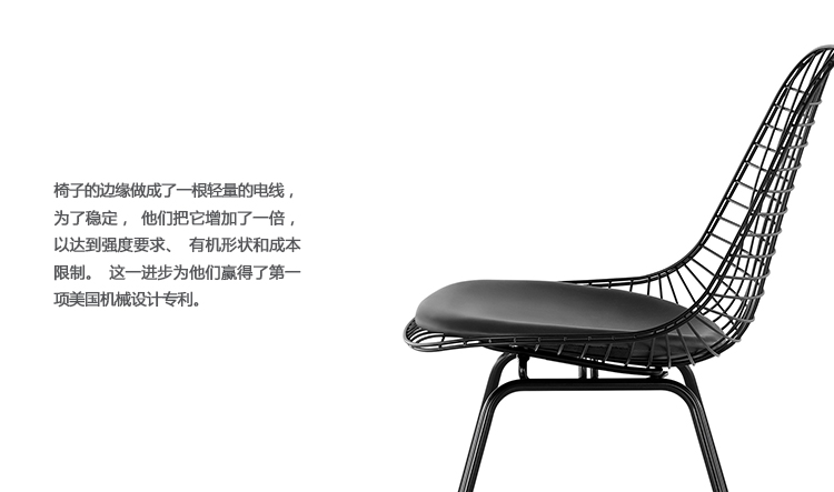 Charles & Ray Eames 1951 年發表的 Wire Chair 系列,以一片式有機網狀椅座,延伸變化出一系列不同椅腳及座墊搭配的單椅,這系列椅款輕巧透明的設計,在 60 年代可說是運用了當時最先進的技術來製作,靈感則是來自於鏤空的金屬收納籃,金屬條交織的椅座,彎曲的弧面不僅符合人體工學,在視覺上更具有穿透性。