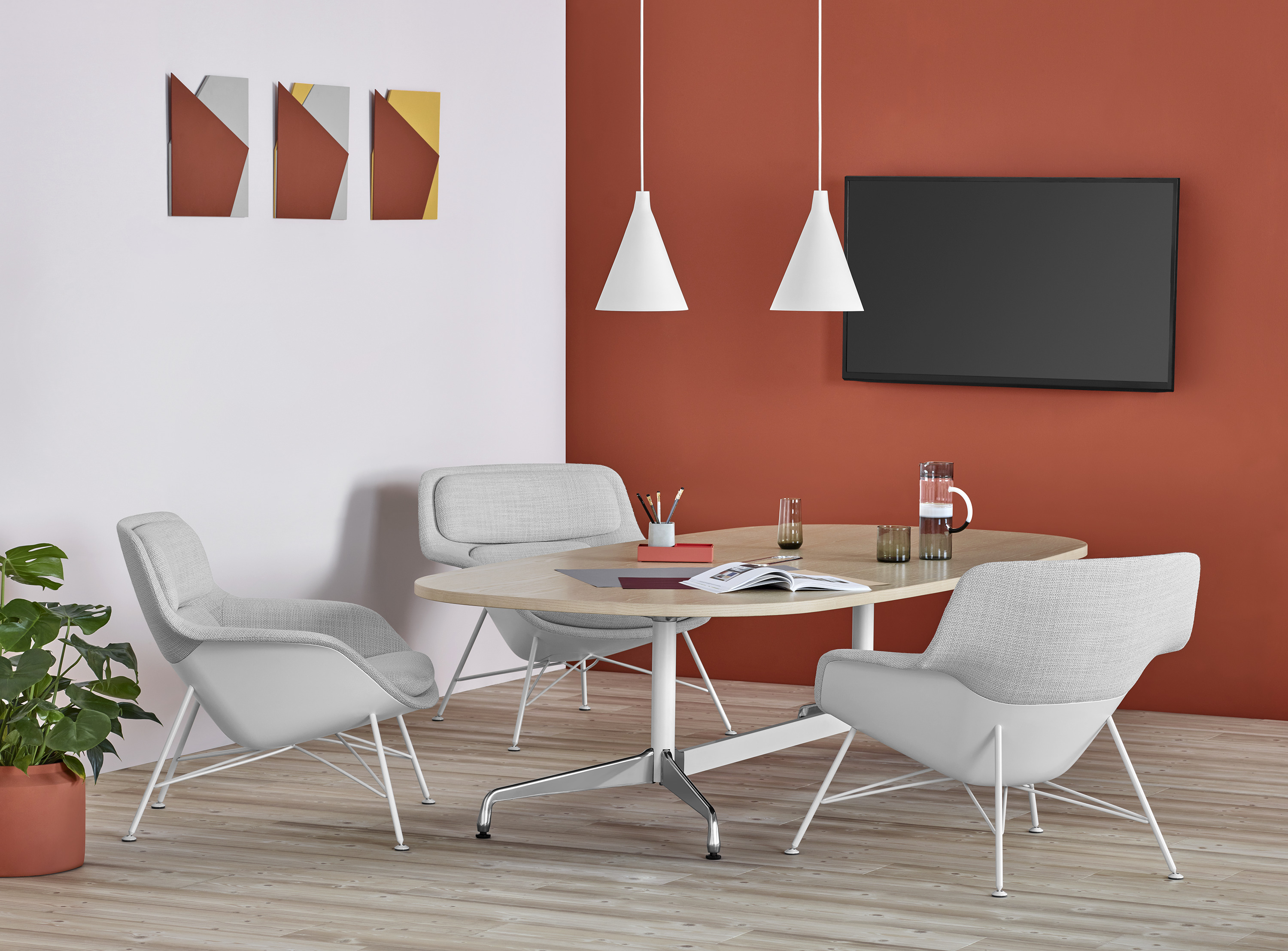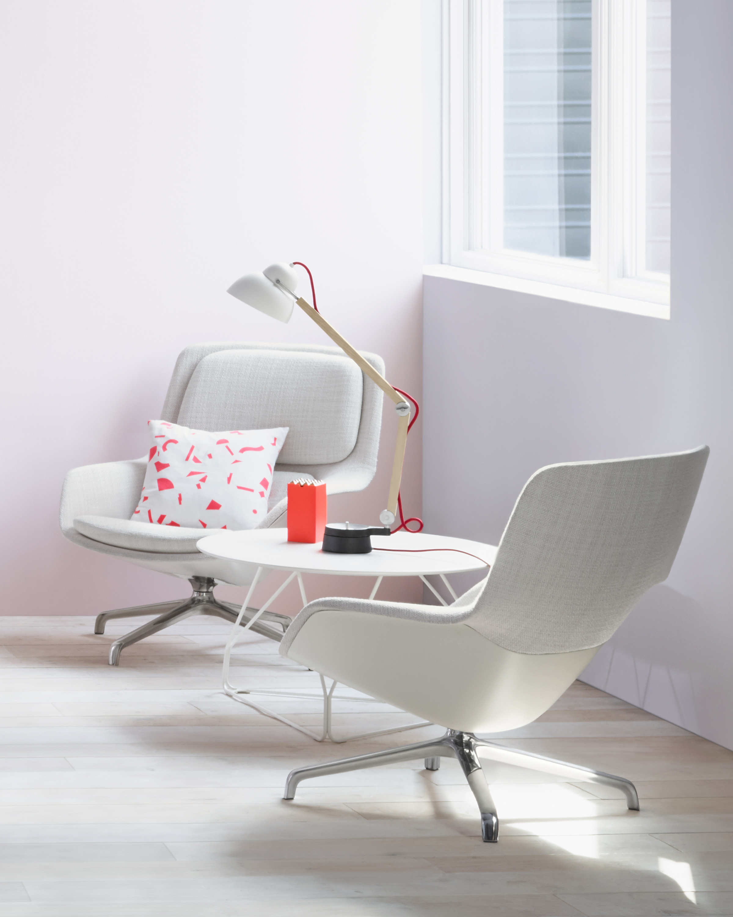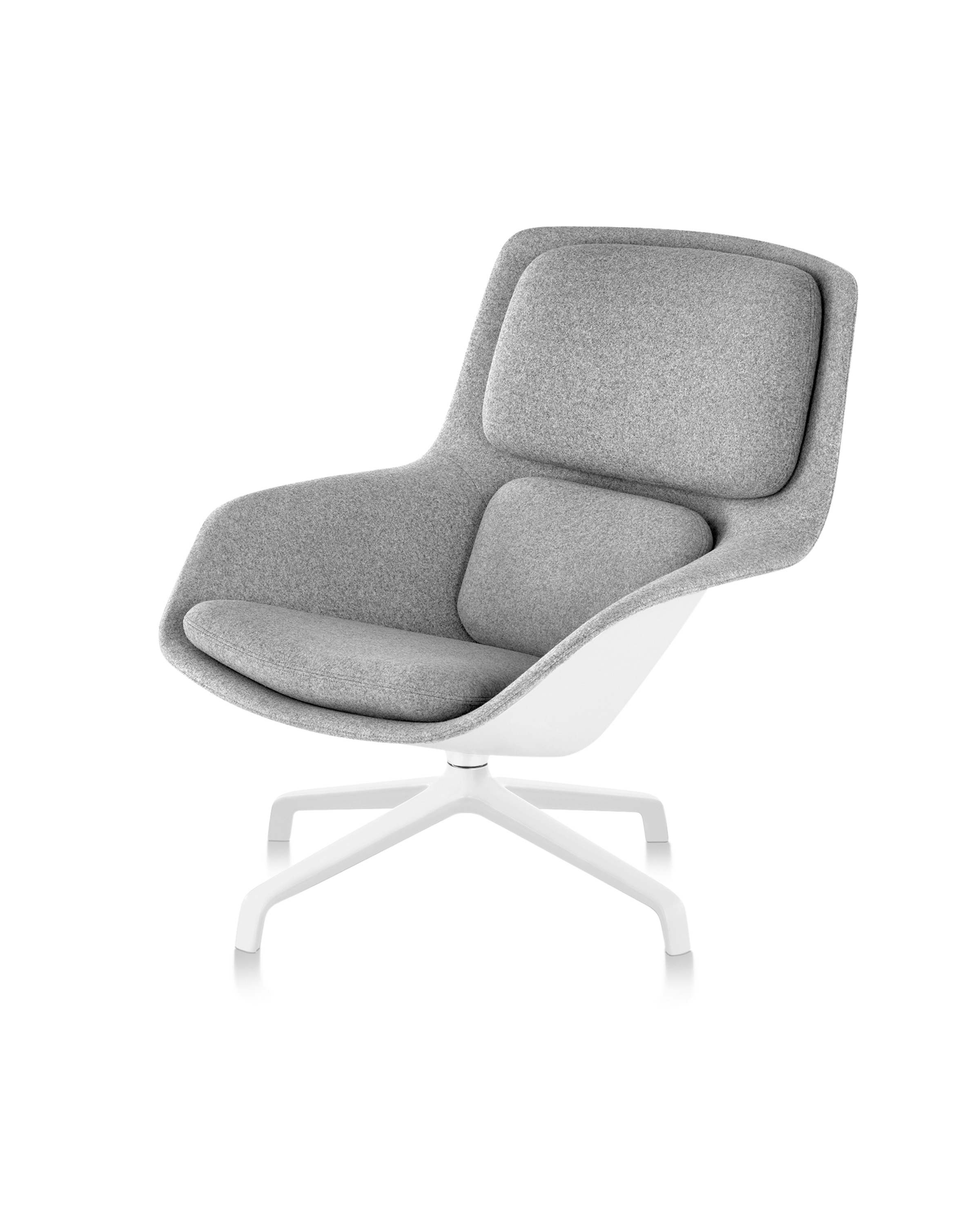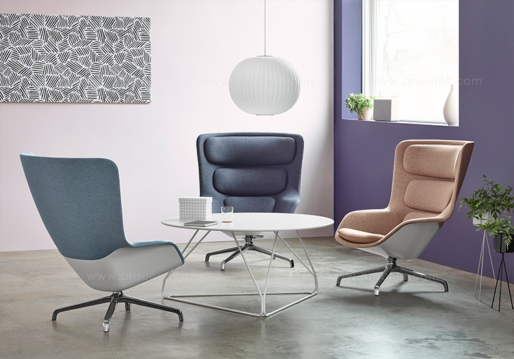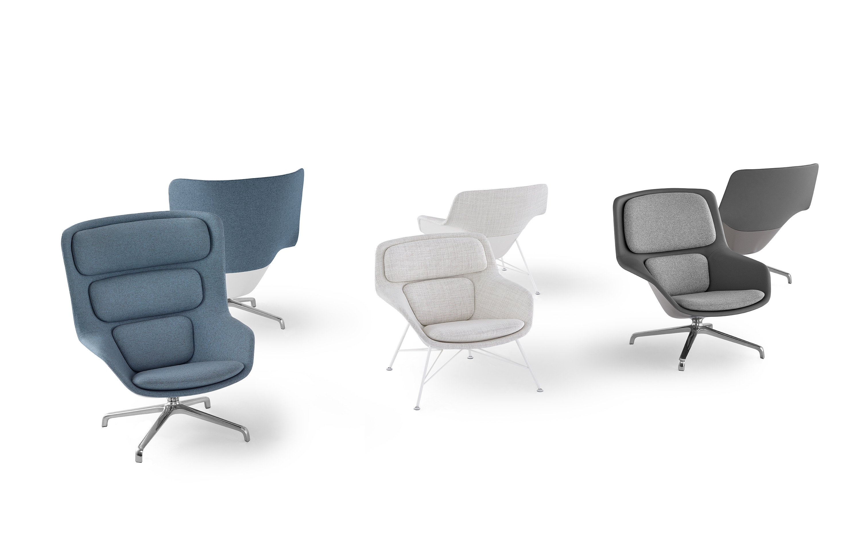 Striad能提供低、中、高三种靠背的款式,其中每款都可以选择四星自动返回底座或者固定的四腿钢丝底座,同时还能提供诸多饰面和软垫选项,适合与多种风格的空间搭配使用。