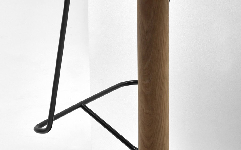 金属结构将木片有机地重叠在一起。木头拥抱金属杆,金属杆的形状微妙地出现在木头表面,就像一个突出物。