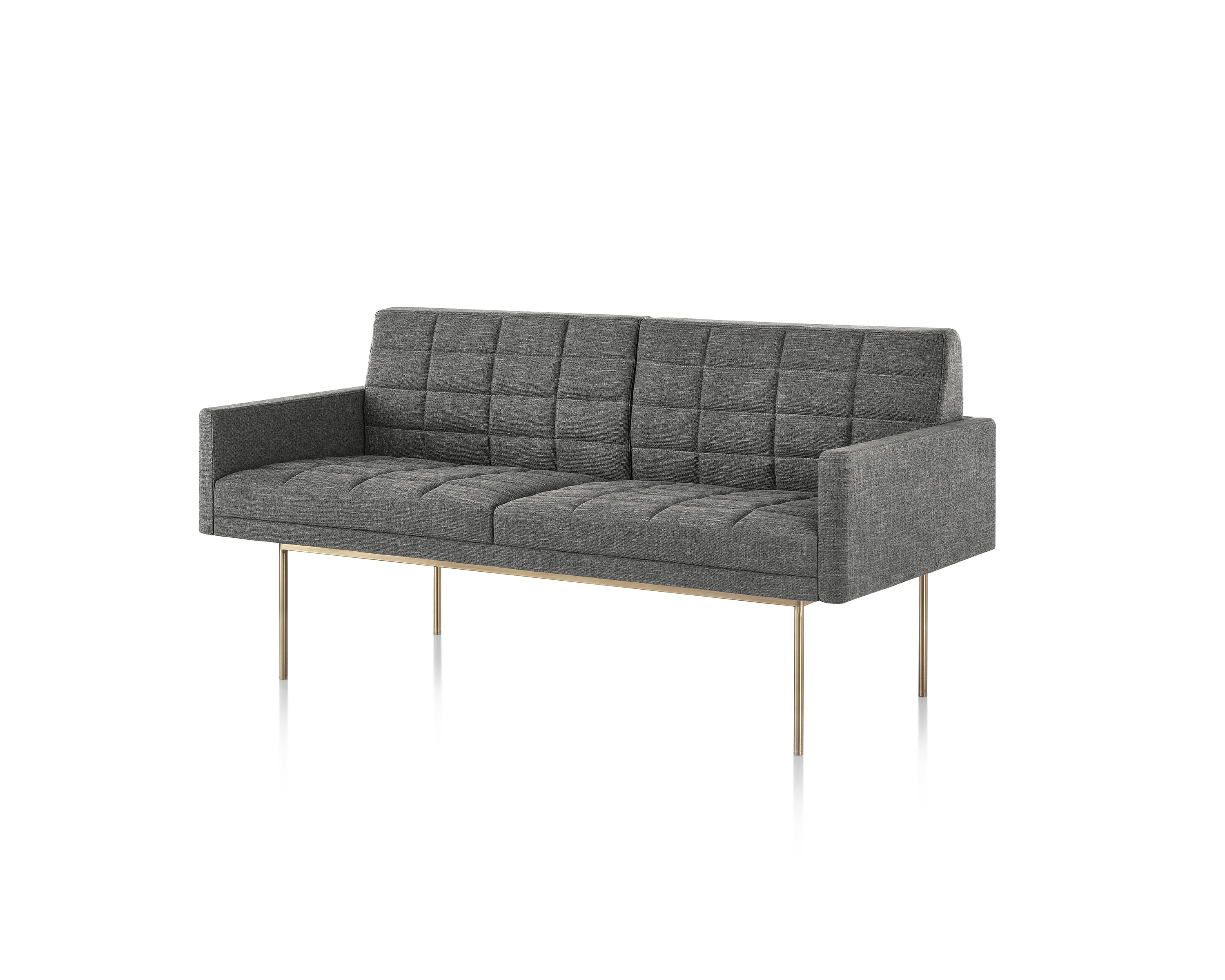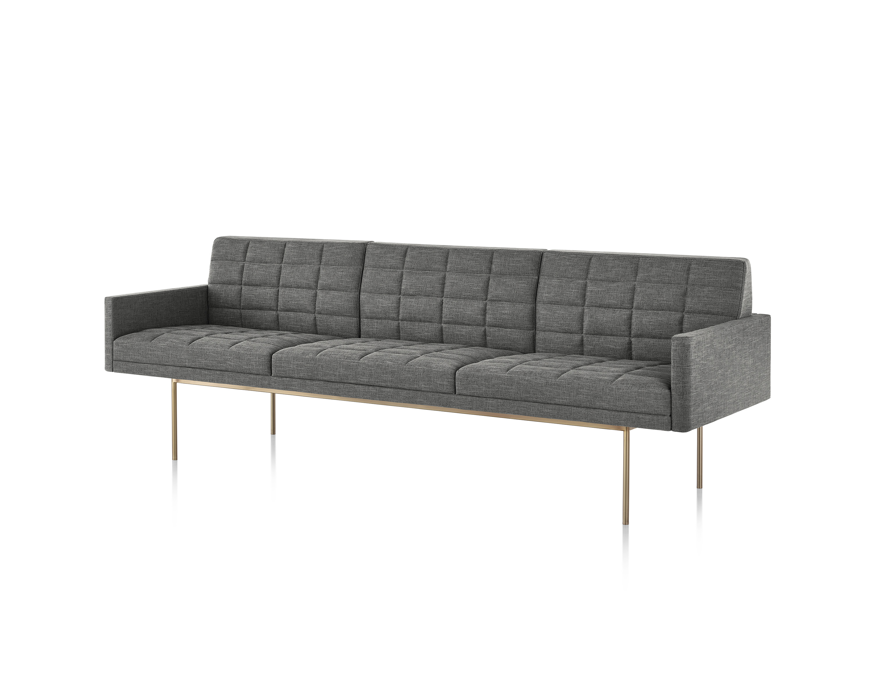 Tuxedo沙发悬挂在狭窄的钢腿上,有多种金属饰面可供选择,由于背部和(可选)臂形成的水平带,Tuxedo Sofa的轮廓低而光滑。精心设计的室内装潢覆盖了纤薄的双密度泡沫垫,进一步增强了设计的轻巧外观。每件都有各种各样的室内装潢,有或没有绗缝。
