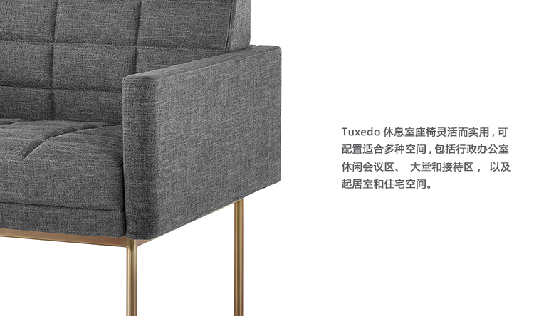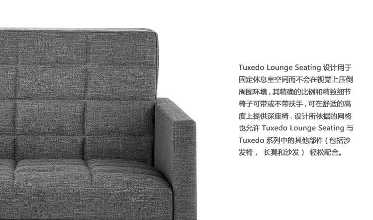 Tuxedo沙发灵活而实用,可配置适合多种空间,包括行政办公室,休闲会议区,大堂和接待区,以及起居室和住宅空间。