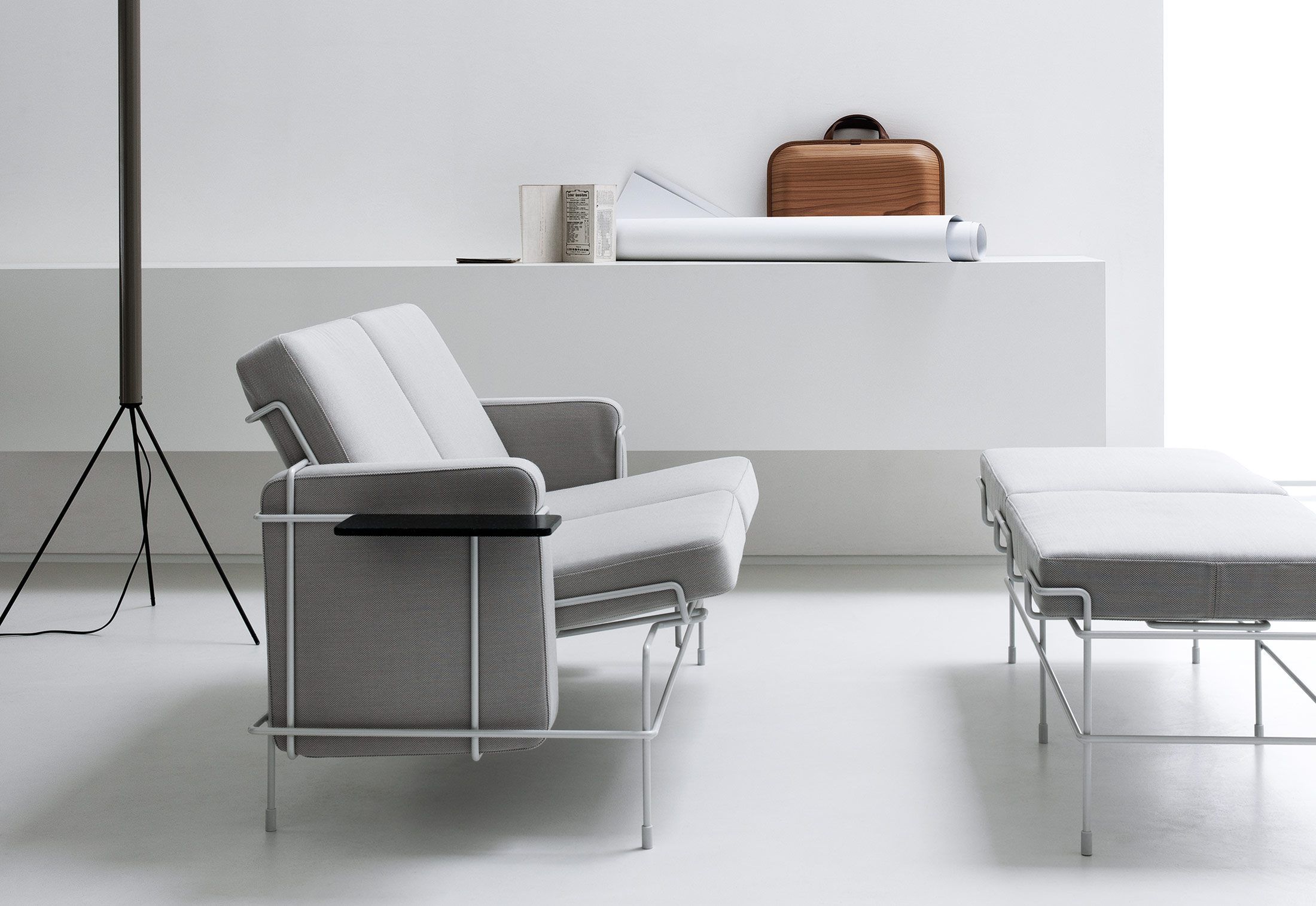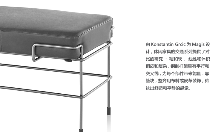 由Konstantin Grcic为Magis设计,休闲火狐官方网站的交通系列提供了对比的研究:硬和软,线性和体积,俏皮和复杂。 钢制杆架具有平行和交叉线,为每个部件带来能量。 靠垫块,整齐地用布料或皮革装饰,传达出舒适和平静的感觉。