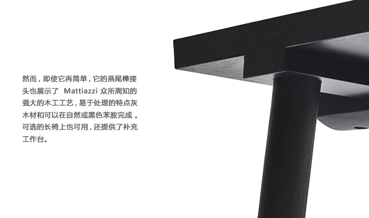 简易桌的设计是由于我们寻求在我们现在的Mattiazzi系列的12个产品系列之间架起一座桥梁的结果。我们正在寻找一张简单的(“简易”的)桌子,它可以和任何一个收藏品的椅子一起使用。这就是这个名字的来源,尽管我们可以用这个马蒂亚齐工艺的例子来命名它“Rondine”,或者更准确地说是“Coda di Rondine”。这种选择的灵感来源于它在我们矿区的火狐官方网站中的使用,在那里我们注意到了它平淡无奇的、简单的美。它已经在那里使用了几个世纪,通常是为了确保