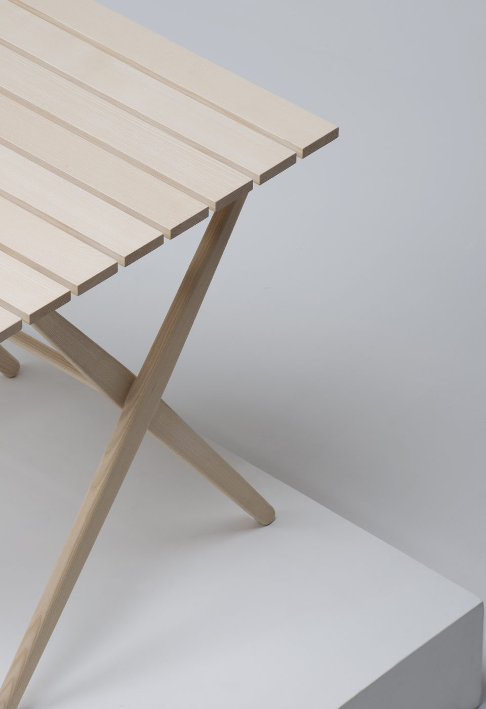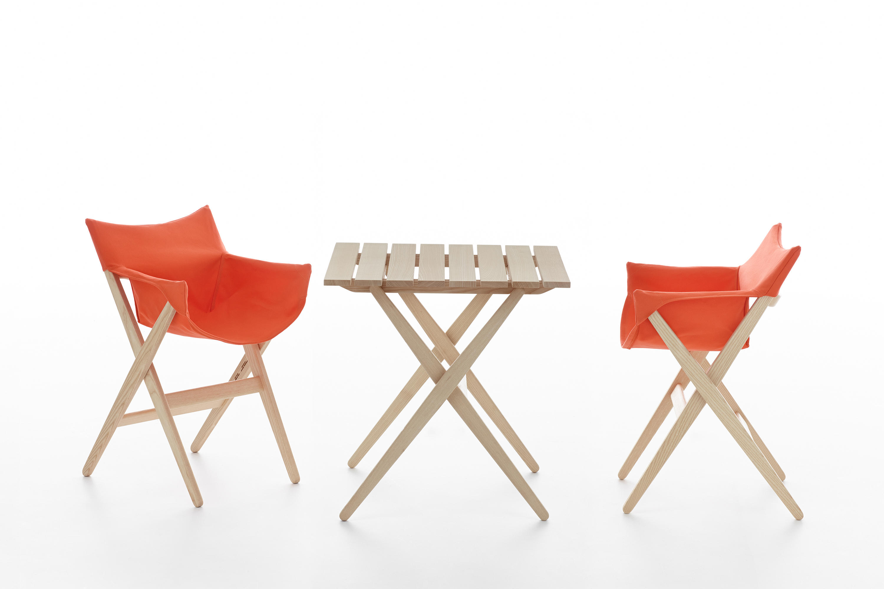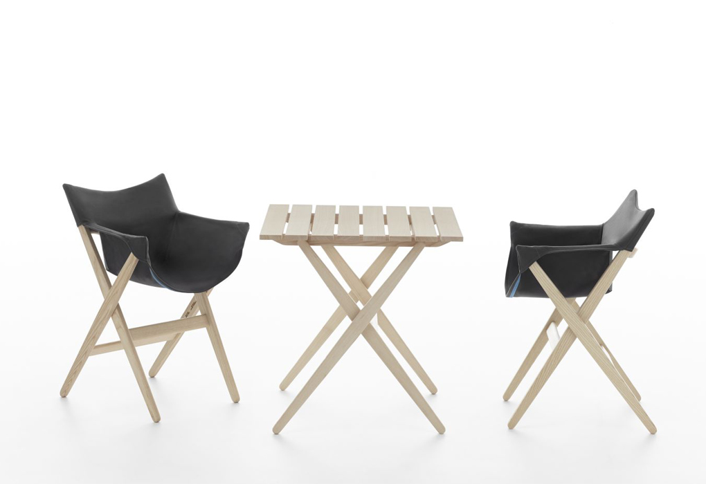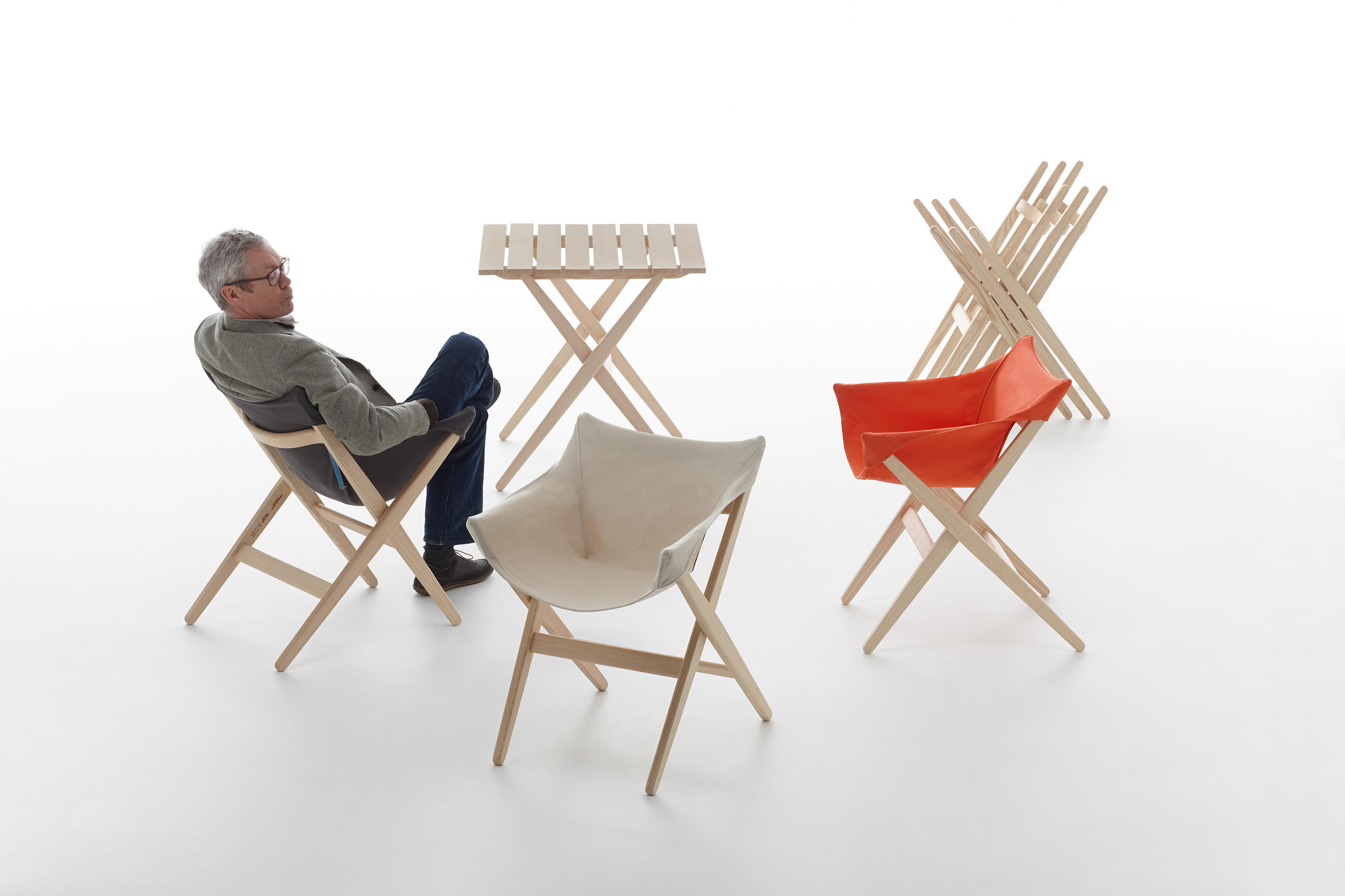 莫里森解释说,菲奥达的灵感来源于在日本买来的一张露营椅,就在他的起居室里。为了使座椅更舒适,更真实的客厅椅子,他决定做一个项目,去除铝条正面和背面。 结果是一把轻便而坚固的椅子可以堆叠起来盖上盖子。