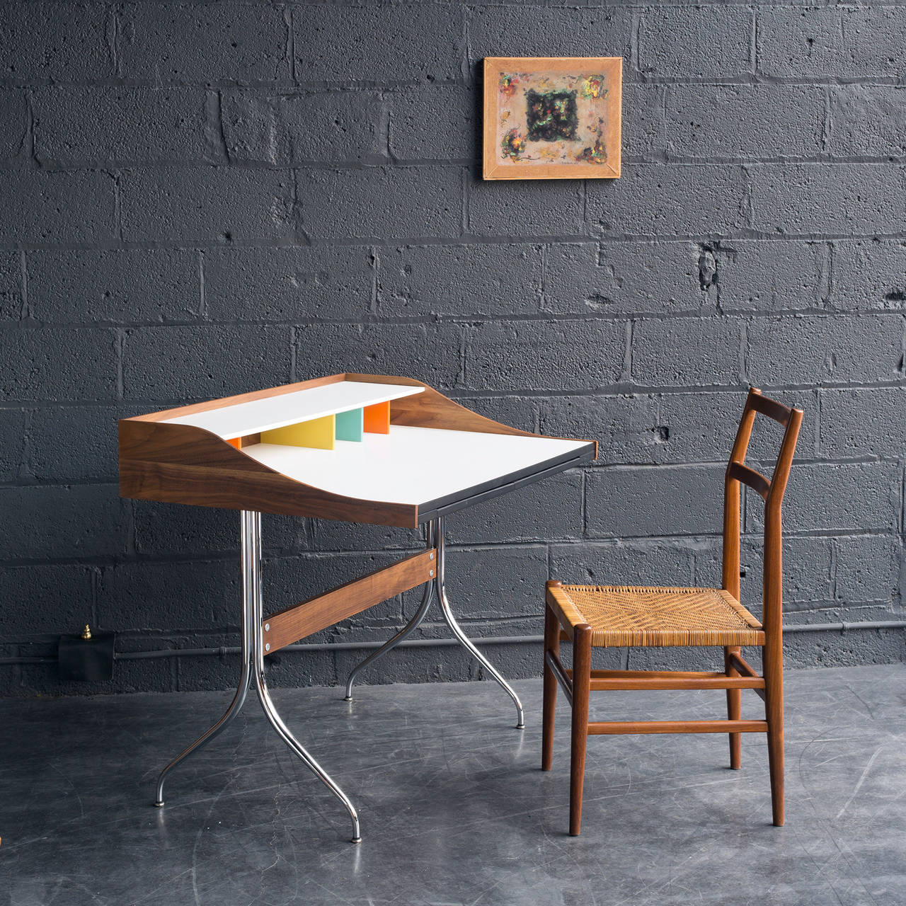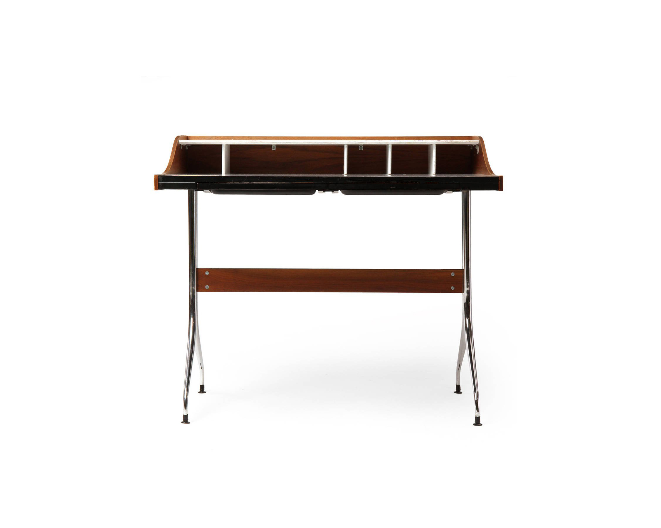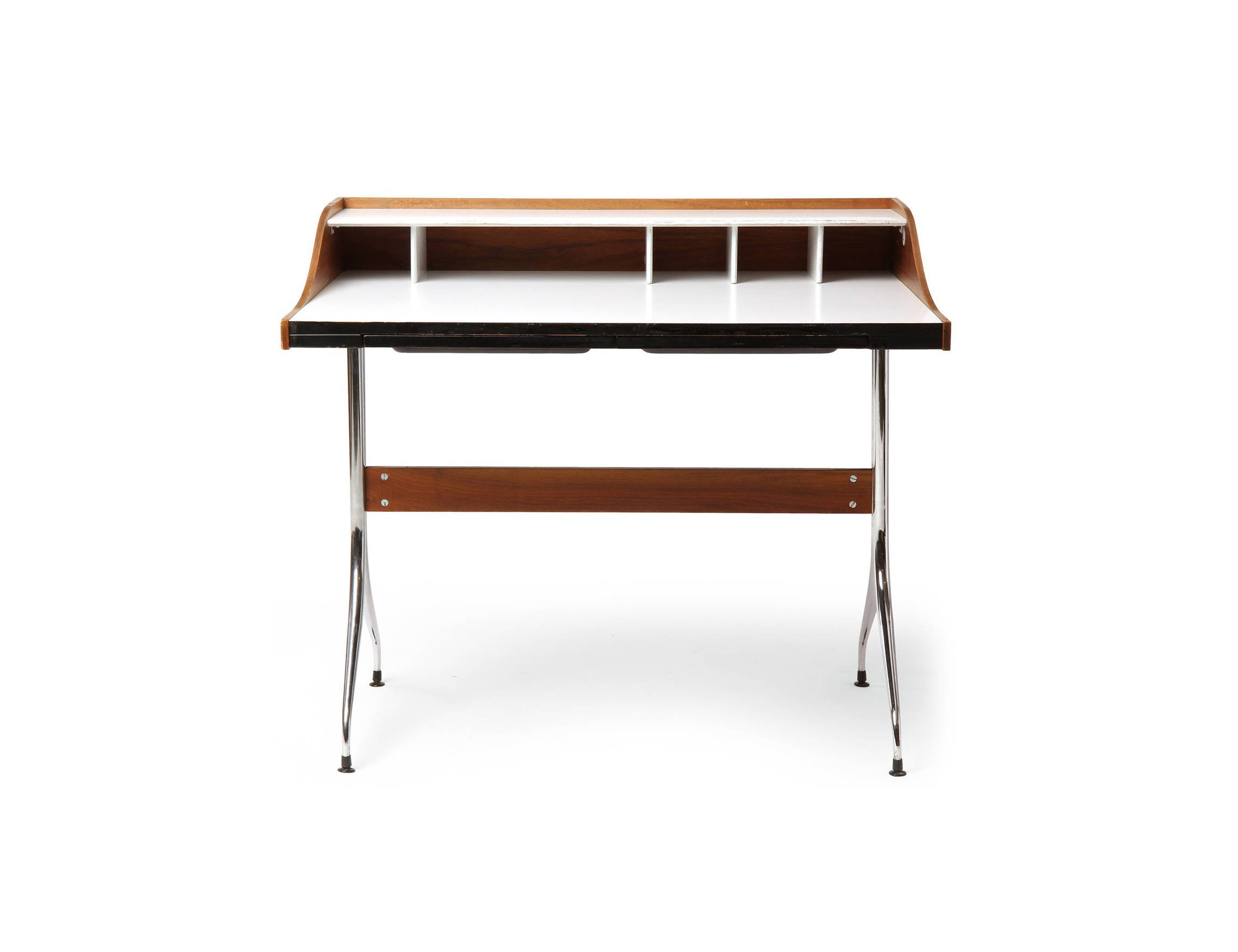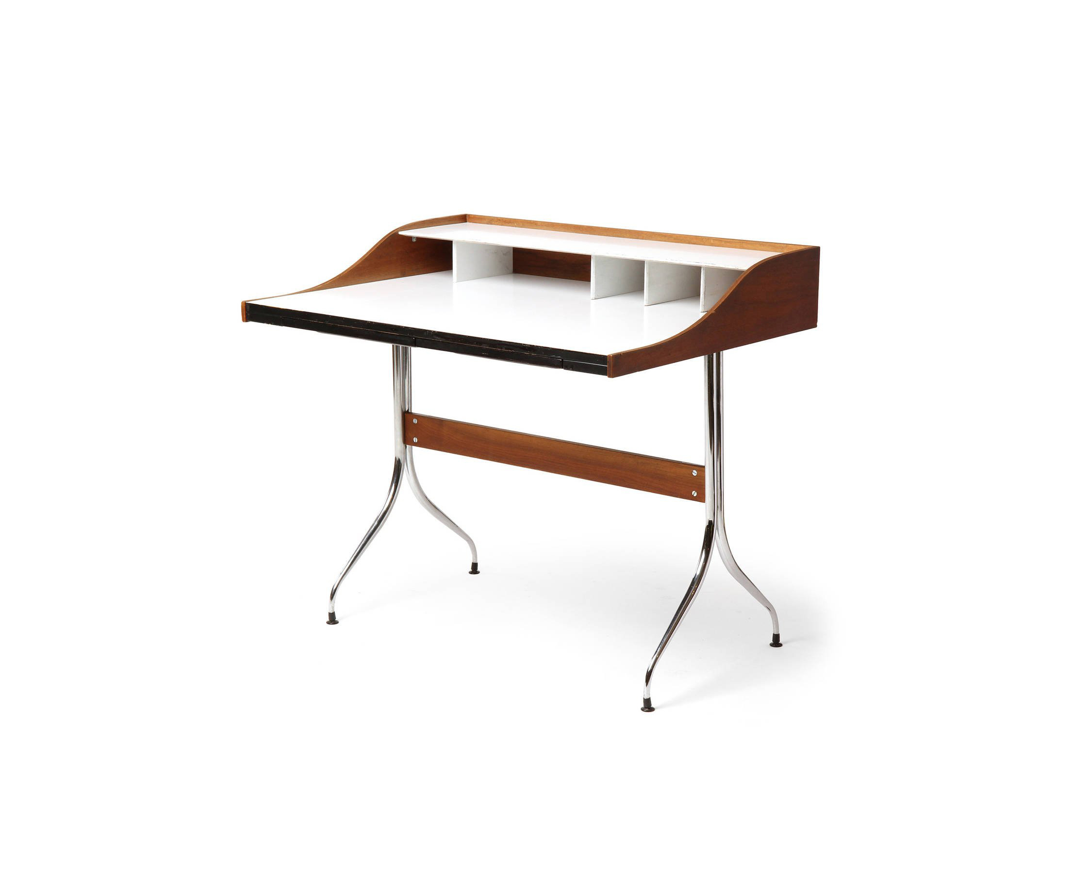 在George Nelson设计出Nelson swag leg系列产品50年后重新推出这款经典产品,主要是因为不管是其外观、尺寸还是功能都非常符合现代顾客的要求。这款办公桌的尺寸非常适合放置笔记本电脑或移动设备底座,并且能有效地利用您家里或办公室的空间。这一系列产品是办公室、会议室和饭厅的理想选择。