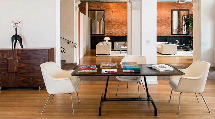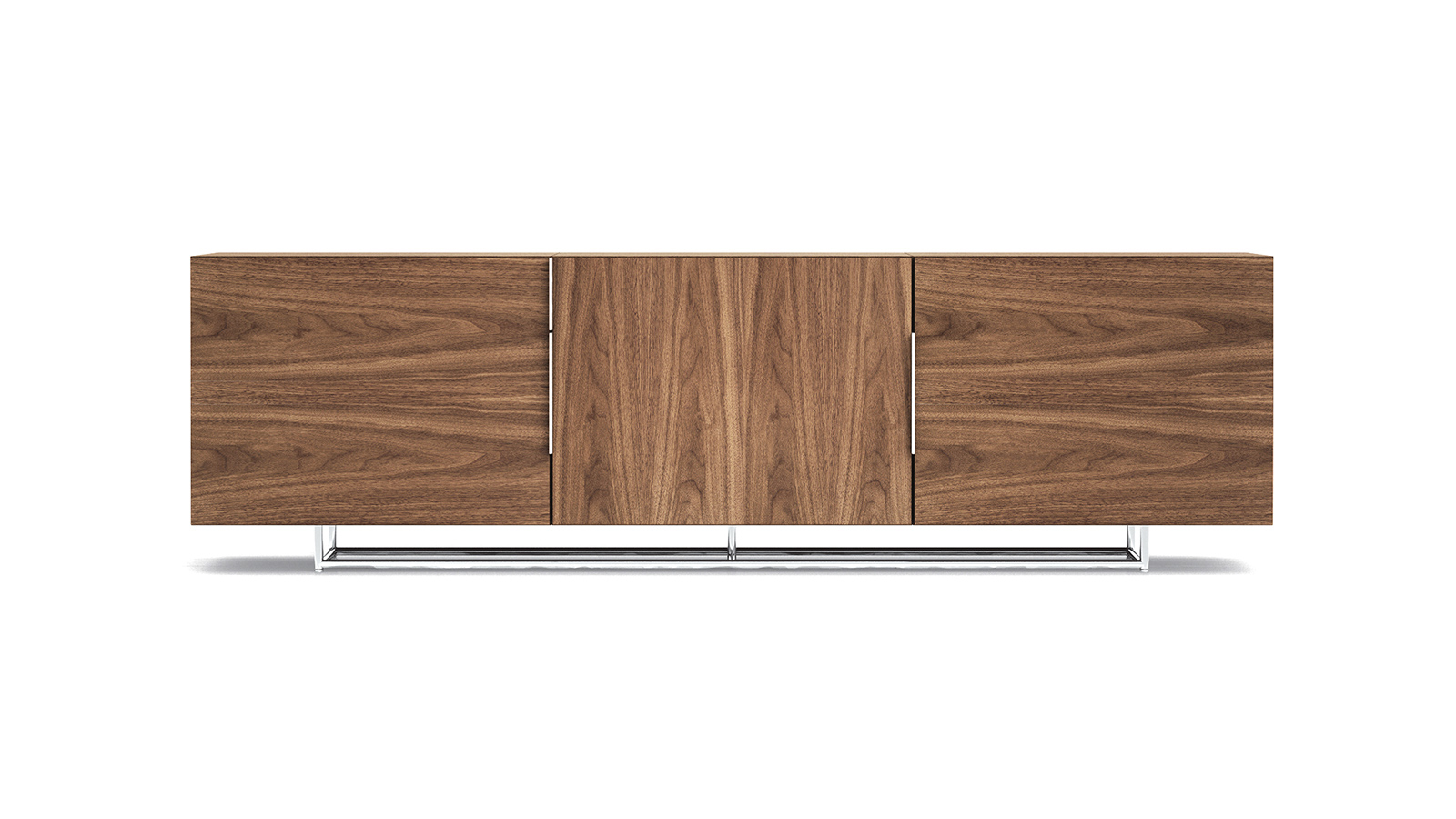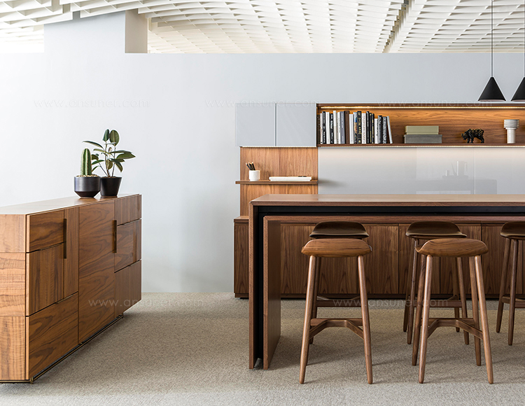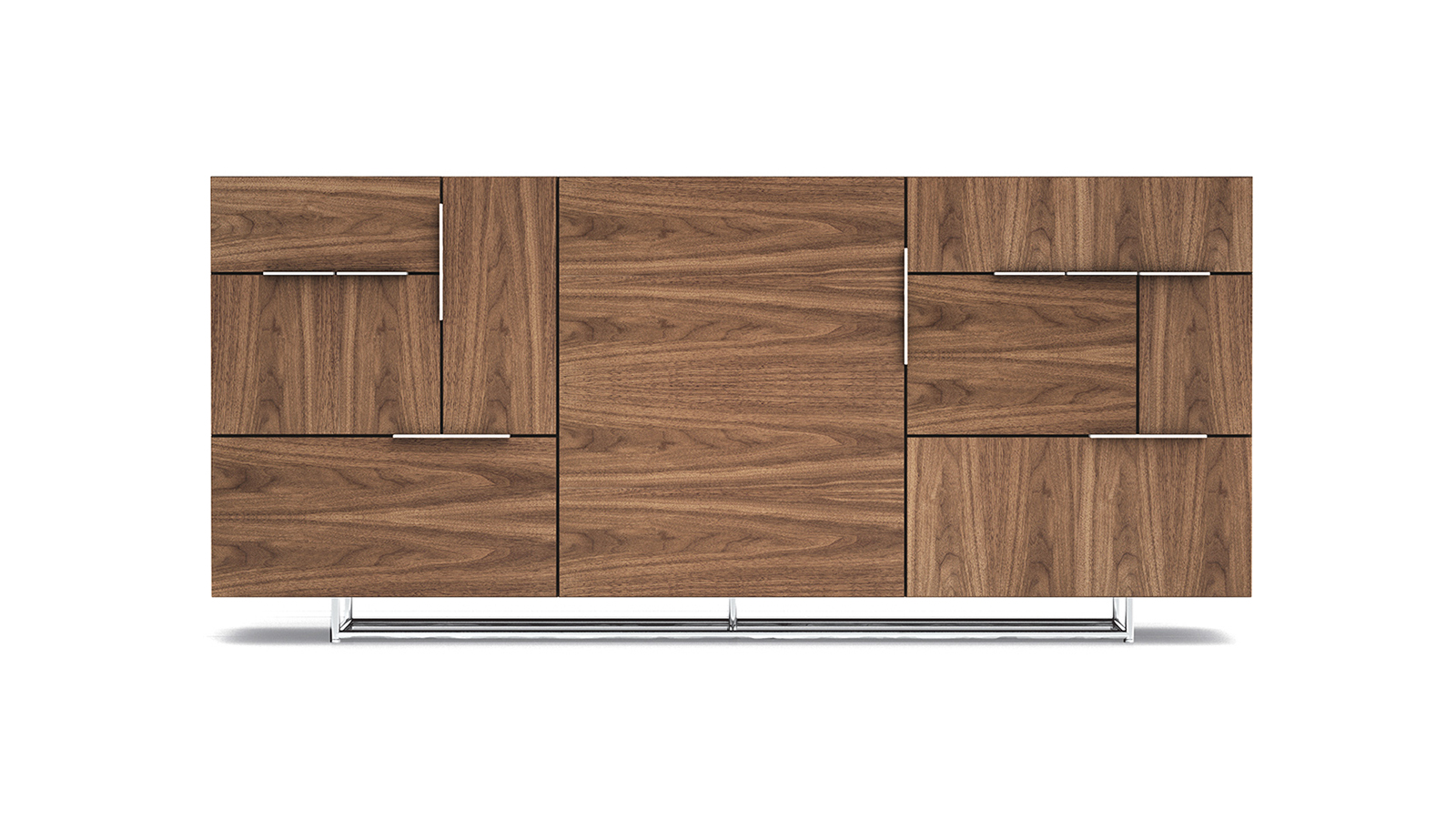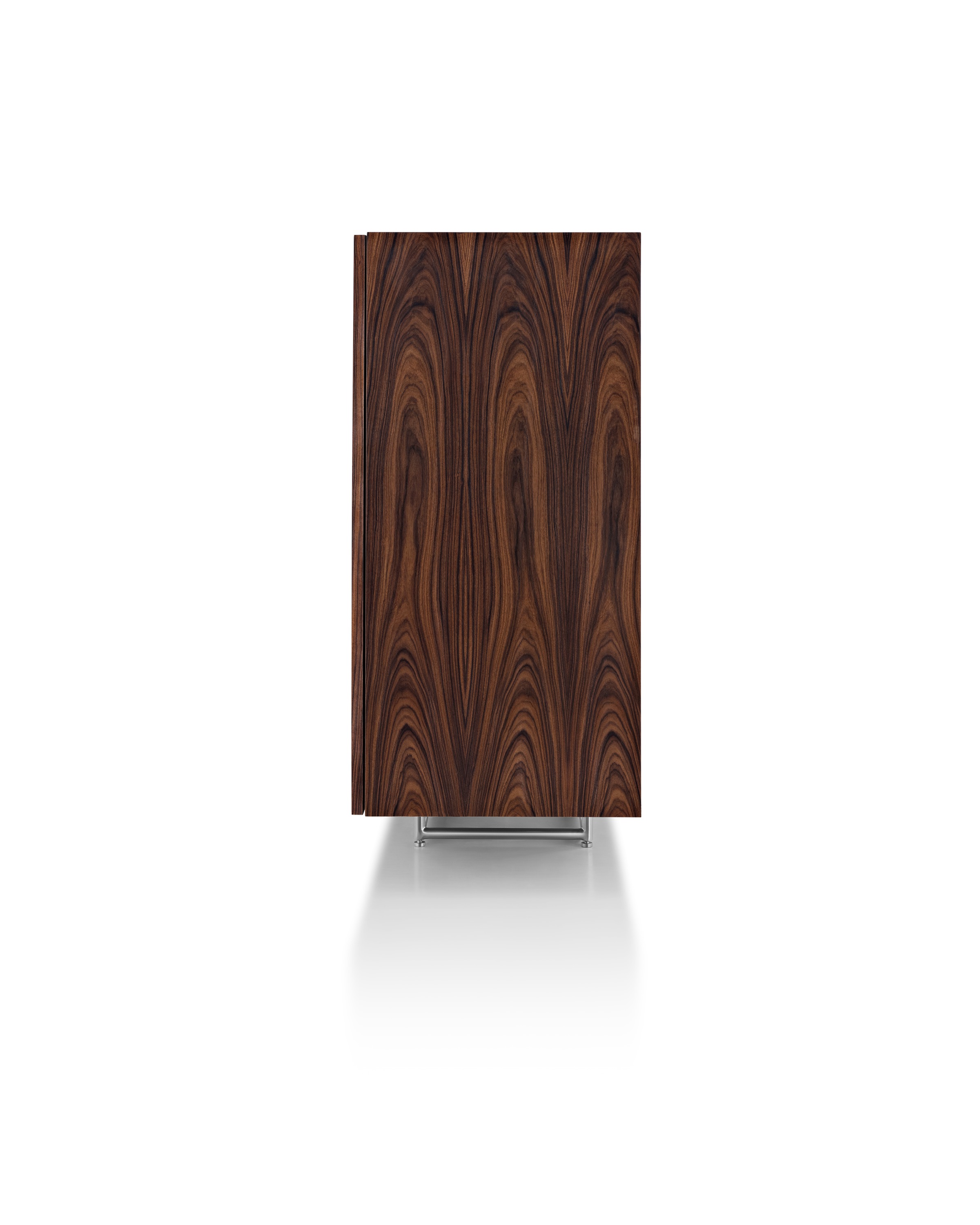 从内而外打造Domino系列绝不意味着Weinfeld忽视了外部的设计。精致的细节设计和工艺无处不在:从巧妙的胶合板到斜接转角。Domino系列方方面面都堪称完美,既可摆放在客厅和餐厅之间,也可安置在开放式办公室中。该系列可提供66.04厘米和101.6厘米两种高度选项,两单元、三单元或四单元宽度选项,以及六种格局选项。饰面采用胡桃木、巴西花梨木及黑檀木打造而成,镀铬或缎面镀铬镶边,内部采用坚固的水曲柳。