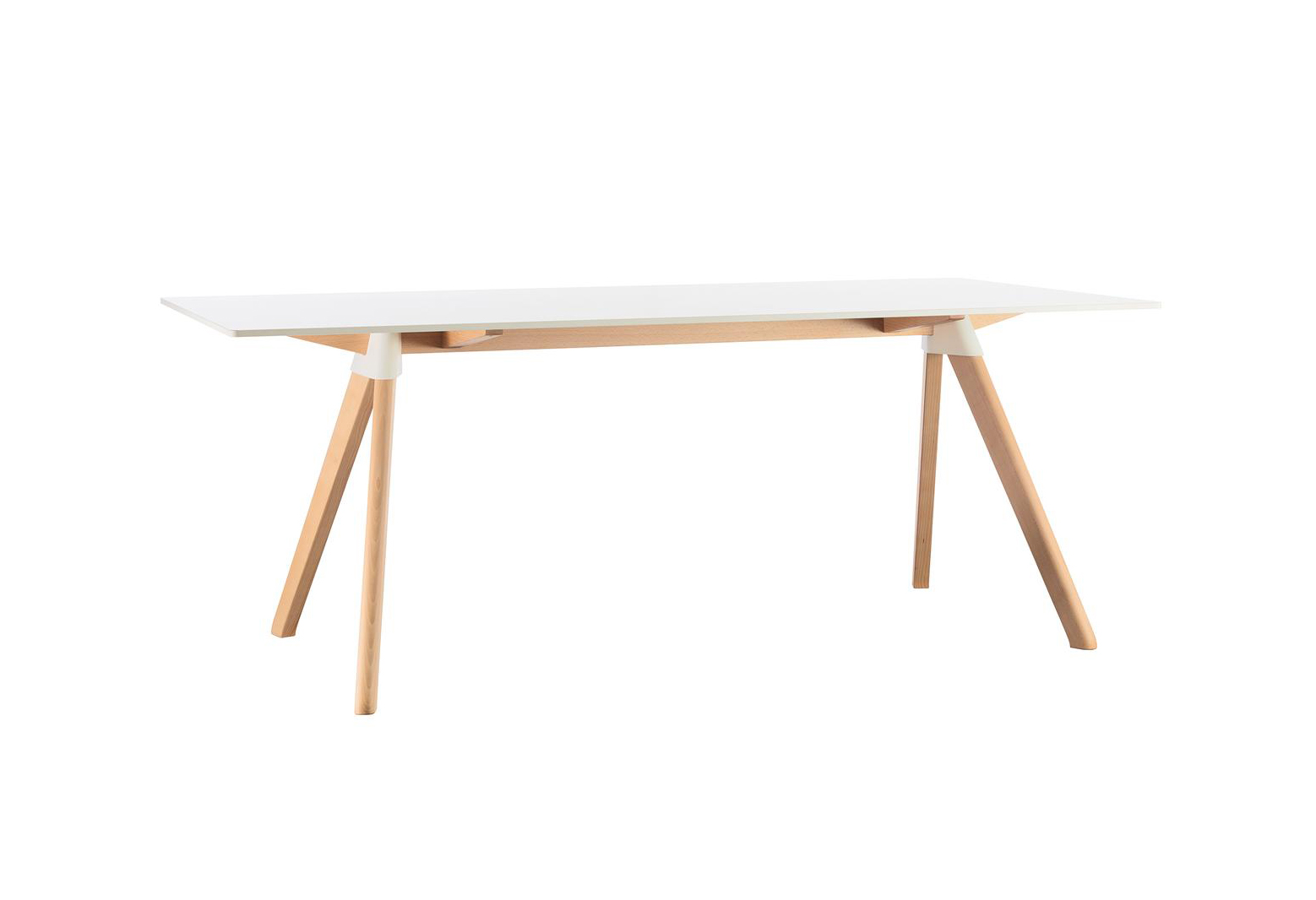 与系列中的所有产品一样,Butch table的特色是一个实心山毛榉框架和注塑聚丙烯接头,以及一个矩形的HPL(0.5英寸厚)顶部,有两种尺寸和两种颜色(白色和黑色)可供选择。黑色的HPL上衣可以防指纹。