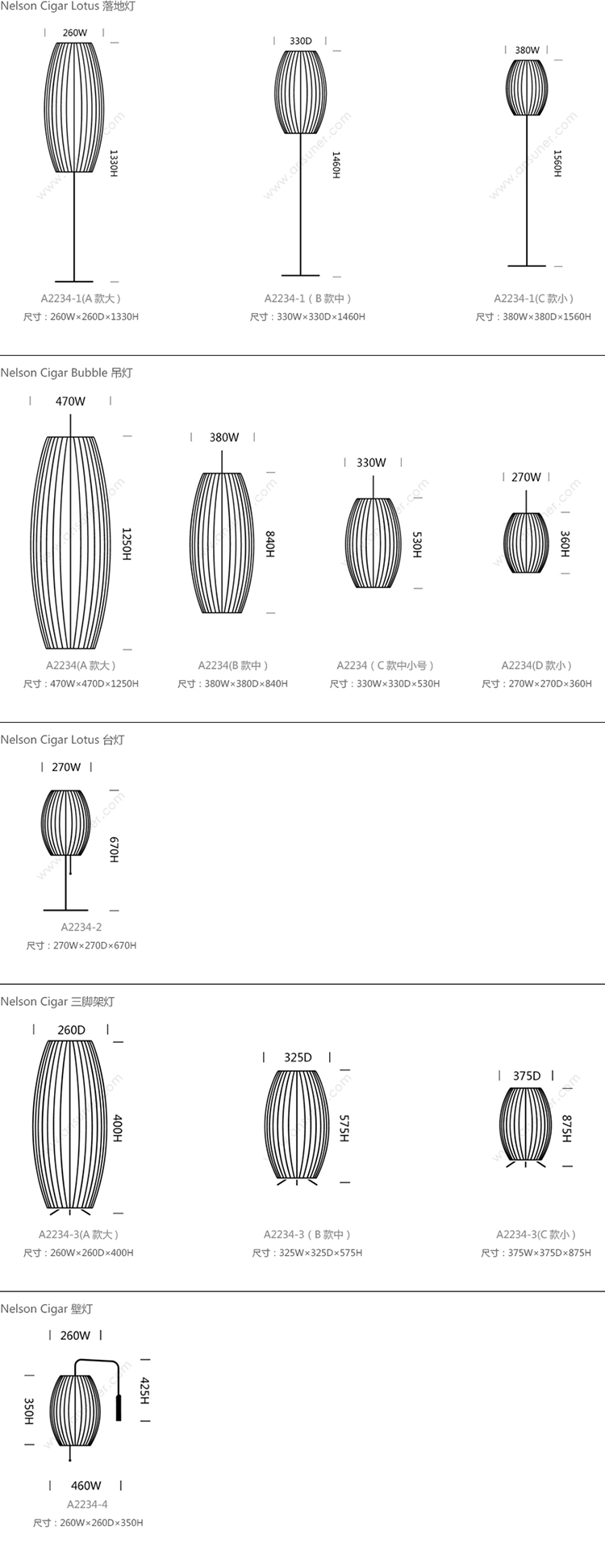 雪茄莲花落地灯将这个经典的乔治·尼尔森设计带到地板上。纳尔逊雪茄莲花落地灯具有细长的球形灯罩和稳定的钢制底座,为任何室内带来雕塑效果。它有三种尺寸,并配有一个9英尺的插件线。1952年,乔治·纳尔逊第一次设计泡泡灯时,他偶然发现了一盏瑞典吊灯,他想买这盏灯到他的办公室。他受到了昂贵的价格的挑战,决定自己做。结果形成了一系列基本的球形形状,比如圆形的苹果、宽碟子、细长的雪茄、以及形状优美的梨等。