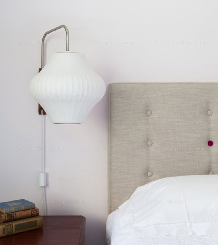 Nelson Pear Wall Sconce采用2英寸厚的实心胡桃木壁挂式支架,伸出的钢臂和12英尺的插入式电源线。 手臂上的旋转铰链可以轻松调节高度。 Nelson Bubble Lamps最初设计于1952年,当时乔治·尼尔森(George Nelson)的灵感来自于一套瑞典吊灯,这些吊灯采用丝绸覆盖物进行繁琐的制作。 然而,更大的挑战是价格昂贵。 尼尔森决定制作自己的套装,并采用创新工艺,用半透明塑料材料取代丝绸色调。