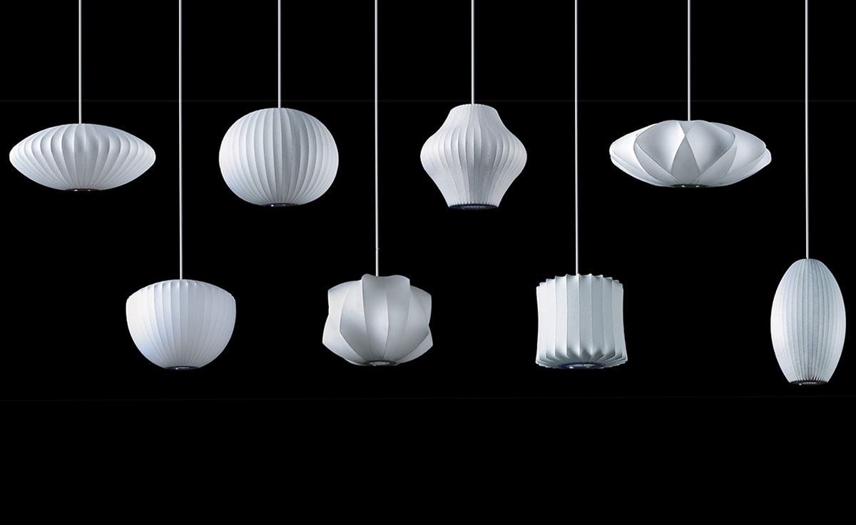 Nelson Propeller Bubble Pendant螺旋桨形气泡吊灯的下层结构中有许多棱角状的凹陷,外形十分醒目。这款雕塑般的吊灯配套有一个吊线板和将吊灯悬挂到天花板上的6英尺吊绳。Nelson最先于1952年设计了这些气泡灯,当时他偶尔碰到一组很喜欢的瑞典吊灯,想给自己的办公室买一套。“有一天,纽约的一家瑞典进口商品店Bonniers宣布对这些灯具进行促销。我带着办公室的一个伙计冲了过去,看到一款在商店里摆放了很久、上面满是手指印的样品居然标价125美金。”Nelson写到。这个价格在当时来讲太过昂贵,让Nelson萌生出自行设计的念头来。