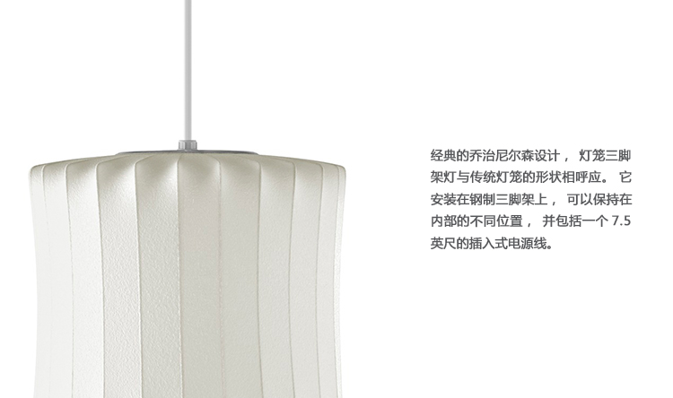 经典的乔治尼尔森设计,灯笼三脚架灯与传统灯笼的形状相呼应。 它安装在钢制三脚架上,可以保持在内部的不同位置,并包括一个7.5英尺的插入式电源线。 尼尔森于1952年设计了泡泡灯,当时他遇到了一套瑞典吊灯,并希望有一个用于他的办公室。 “有一天,纽约瑞典进口商店Bonniers宣布出售这些灯具。 我和办公室里的一个人冲了下去,找到了一个带有拇指标记的商店样品,价格为125美元,“尼尔森写道。 当时陡峭的价格标签促使尼尔森设计了自己的产品。