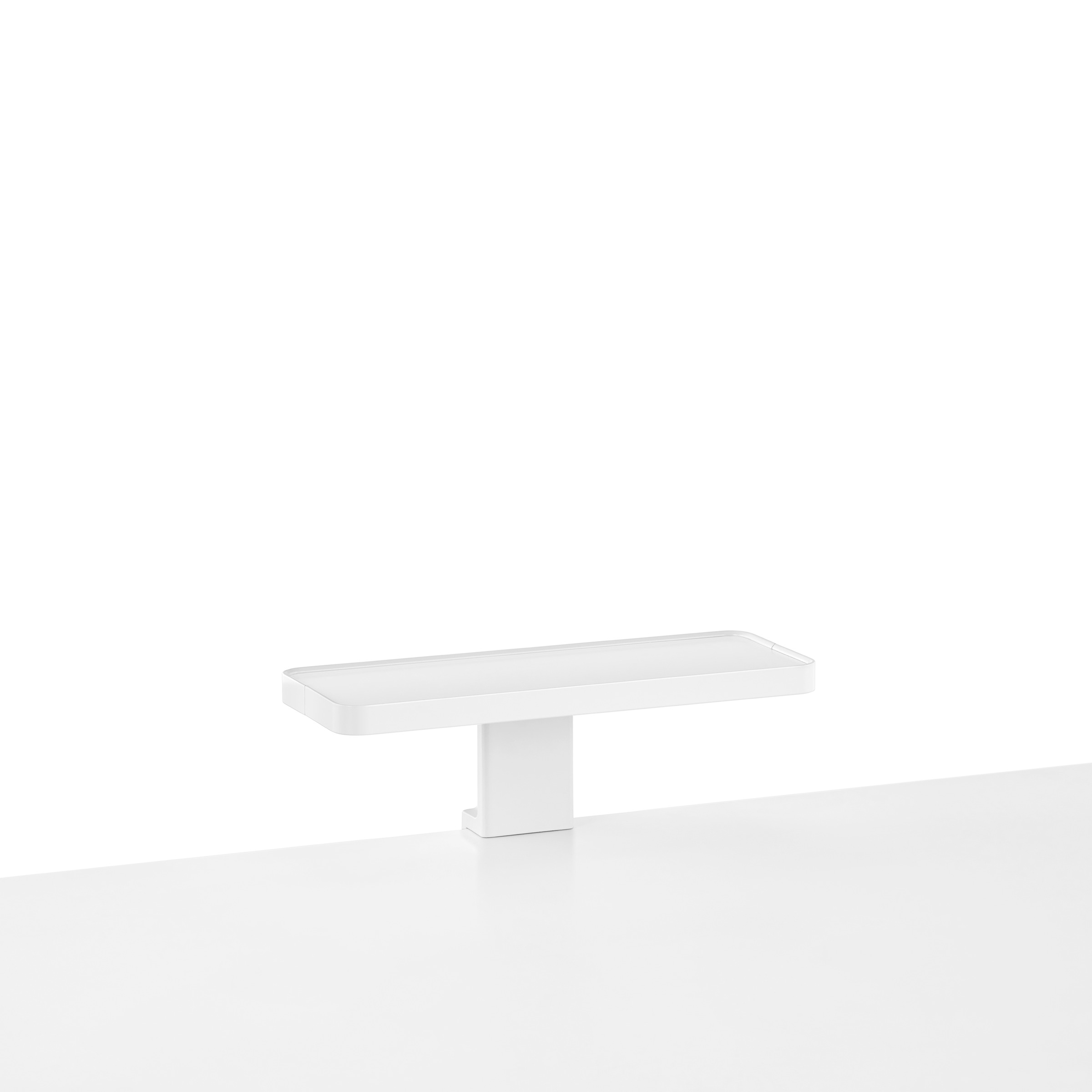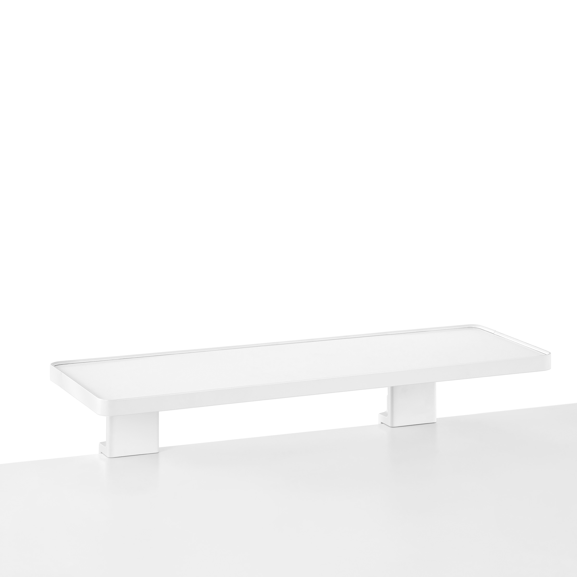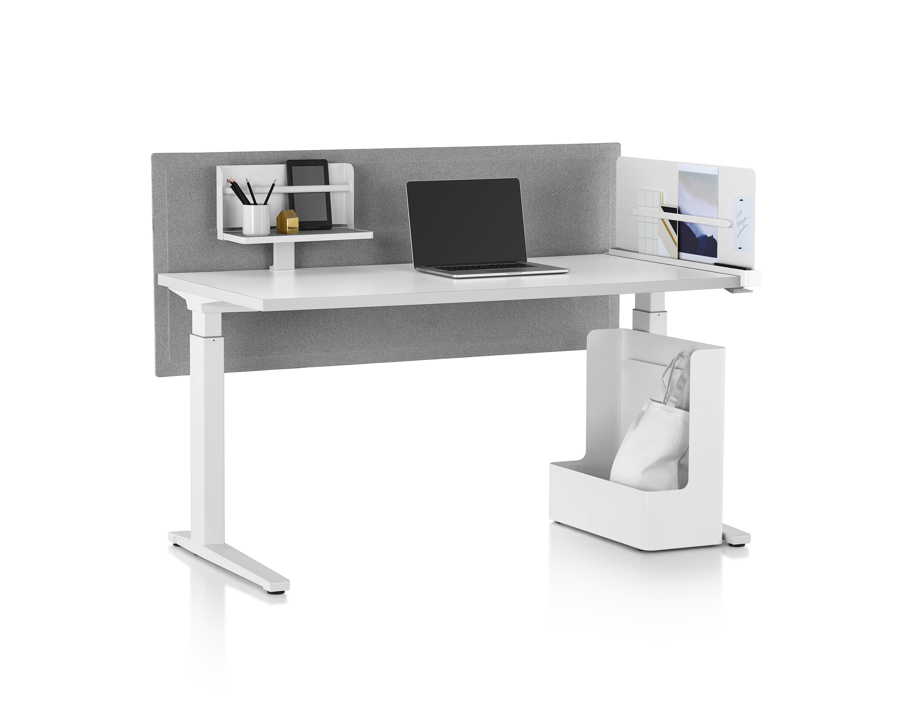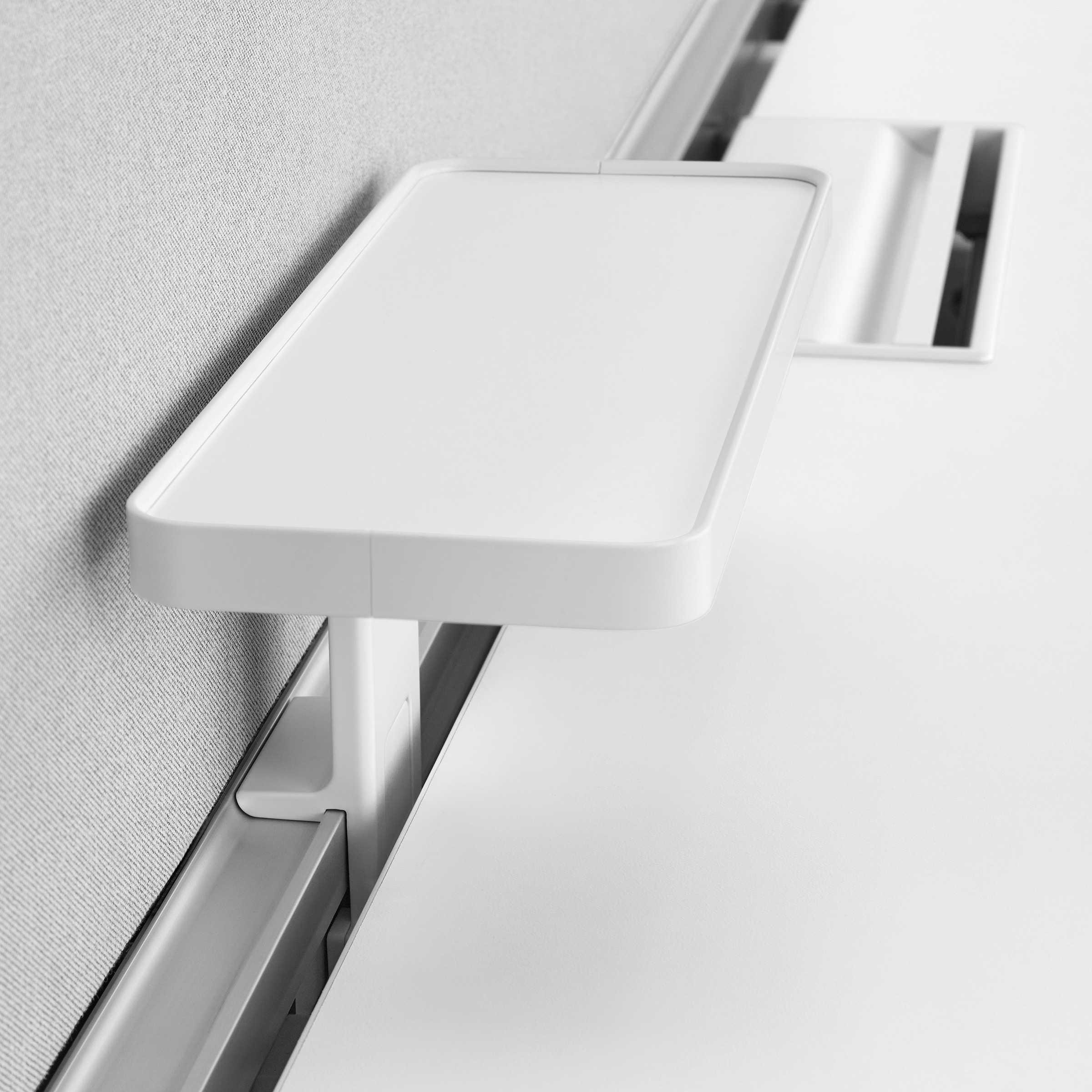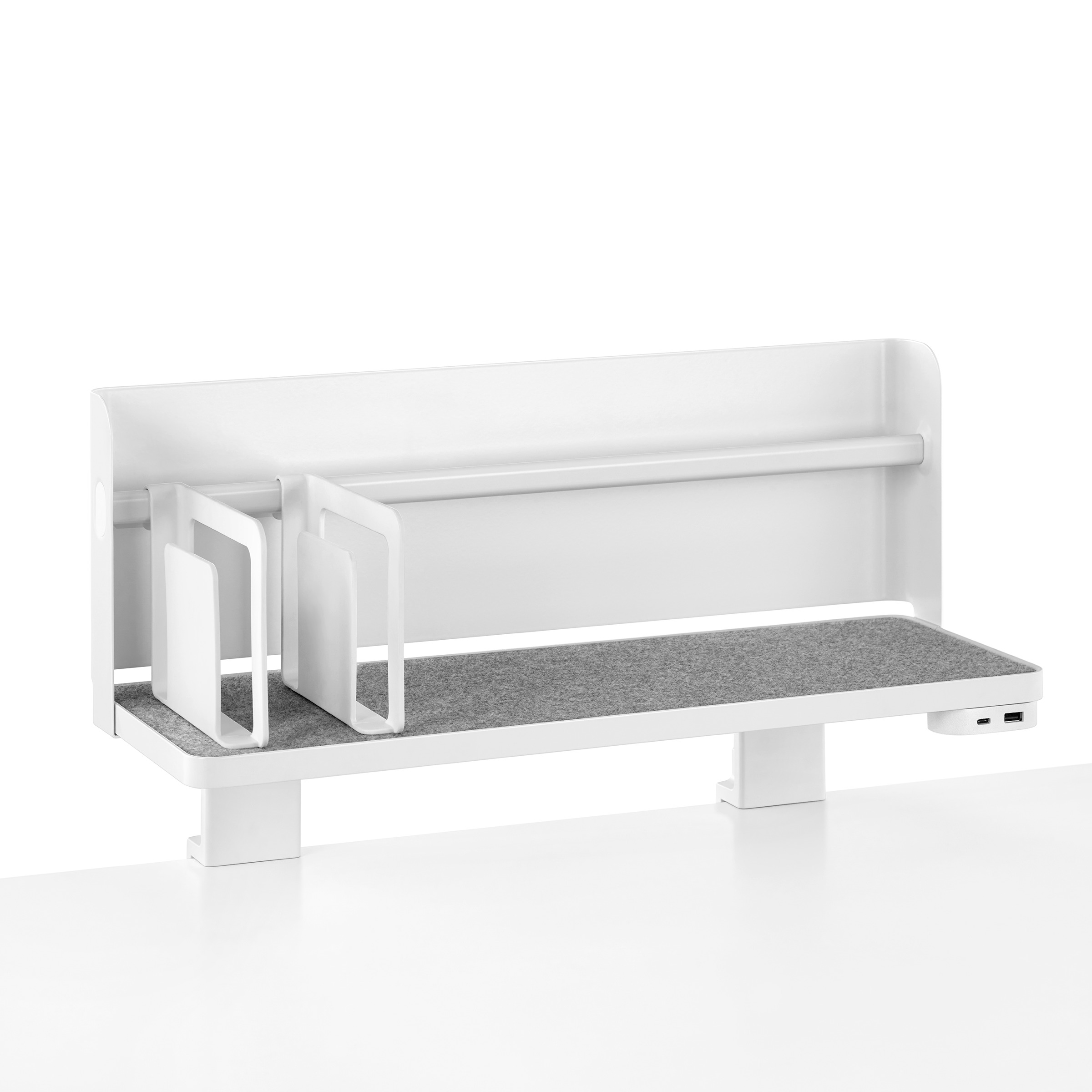 搁板安装在表面的后缘,提供额外的存储空间,无需使用工具即可重新布置。 可选背景使笔记本和参考文档可以垂直定向,从而释放桌面的表面。