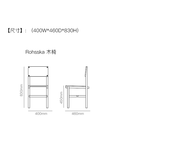 Rohsska 木椅 系列尺寸/示意图