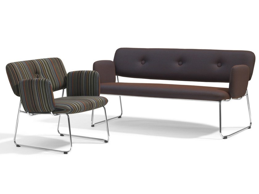 可叠放的沙发和带扶手的沙发。带软垫扶手的沙发不可叠放。木和钢制的框架。用织物或皮革覆盖的CMHR聚氨酯模压泡沫填充物。“绿色”铬合金钢制框架,铬III。塑料英尺。