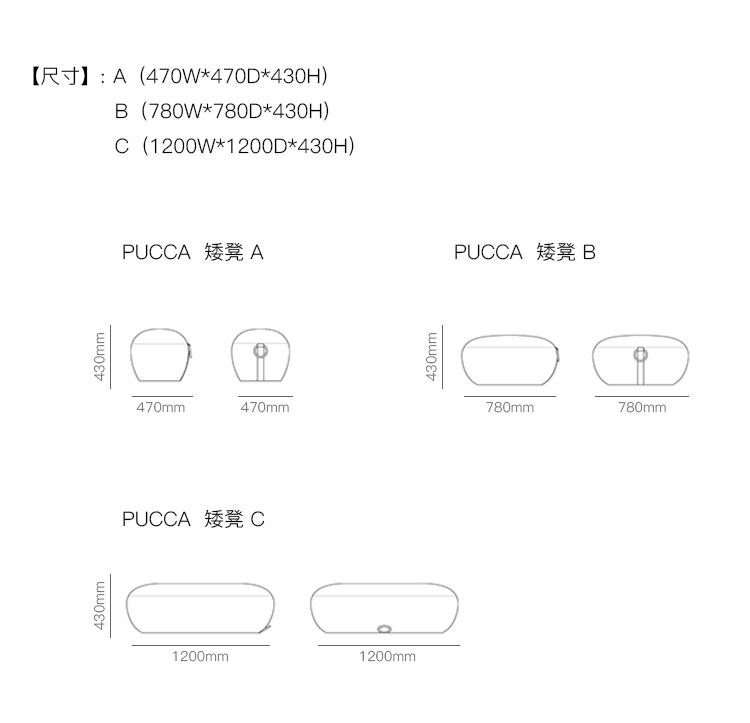 PUCCA 矮凳 系列尺寸/示意图