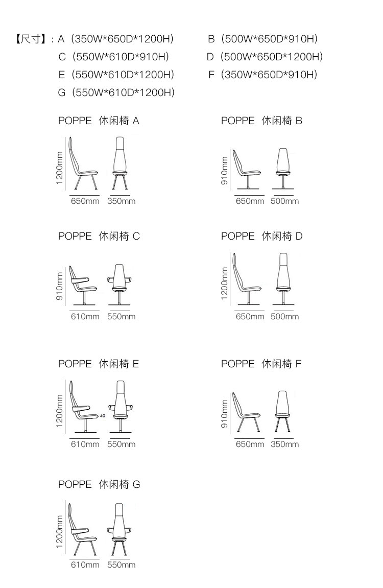POPPE 休闲椅 系列尺寸/示意图