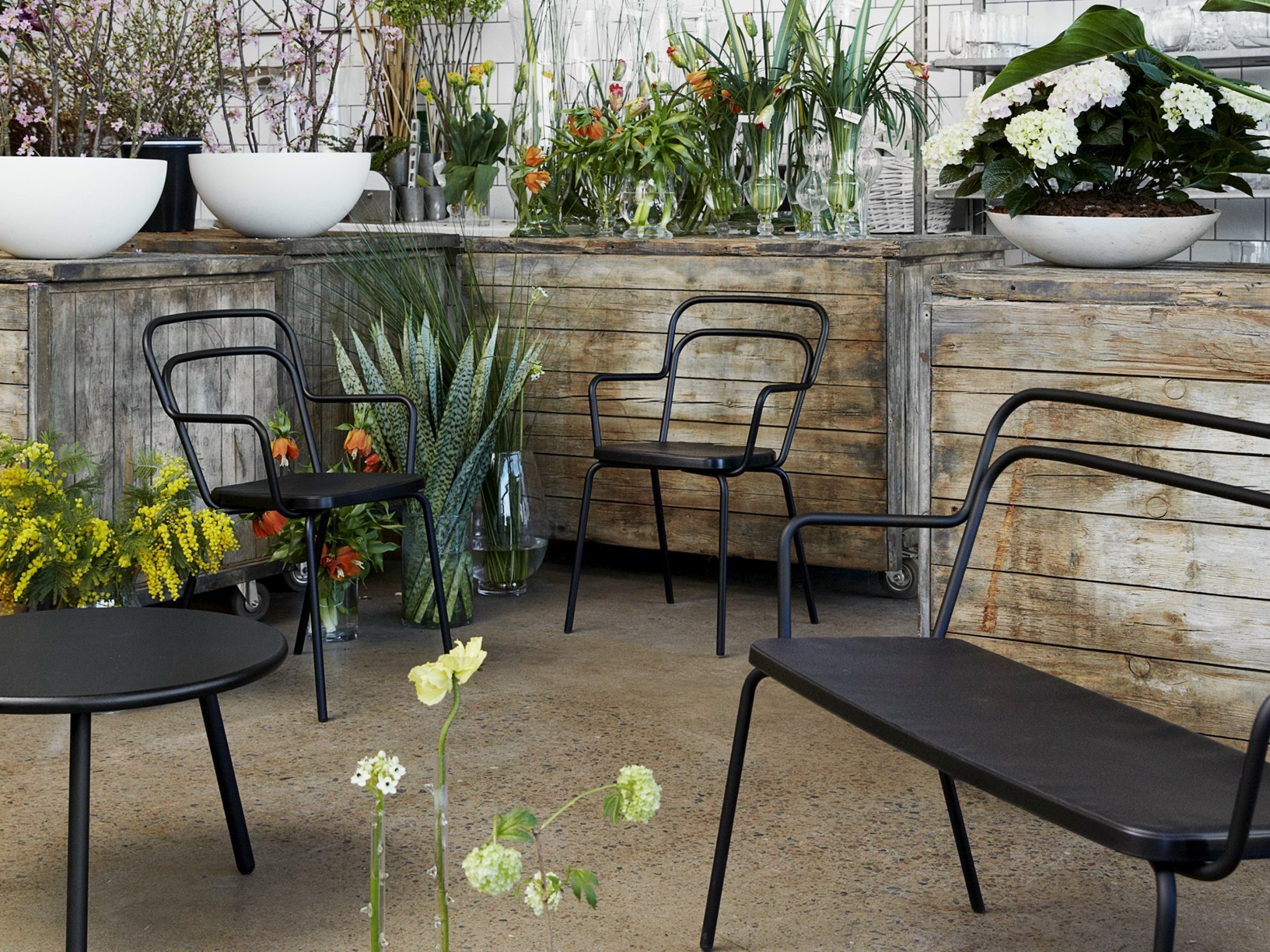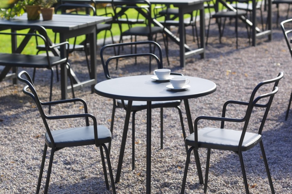 Kaffe家族在室内和室外都同样在家中。实心橡木和valchromat桌子仅用于室内。还有一个完全用钢制成的桌子,供户外使用。如果需要,可以很容易地拆除桌子。Kaffe桌子带有圆形或方形桌面,并且可以选择不同的高度。Kaffe家族包括椅子,安乐椅,沙发和桌子。