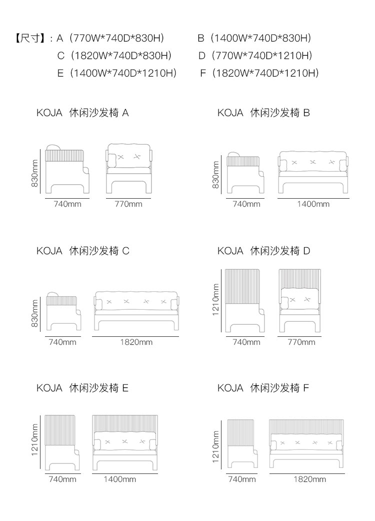 KOJA 休闲沙发椅 系列尺寸/示意图