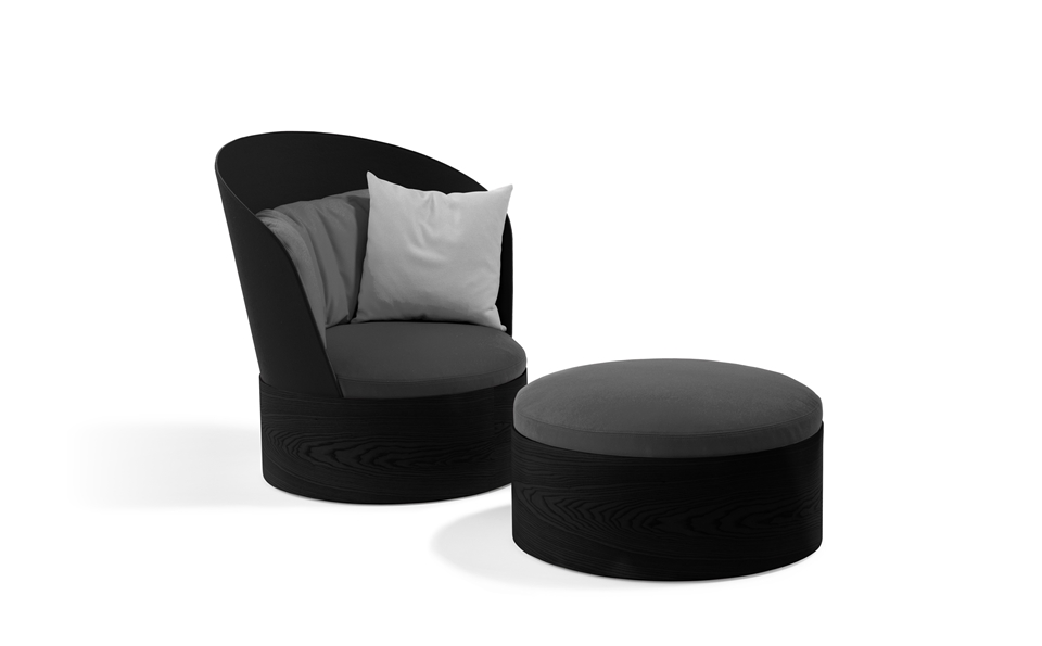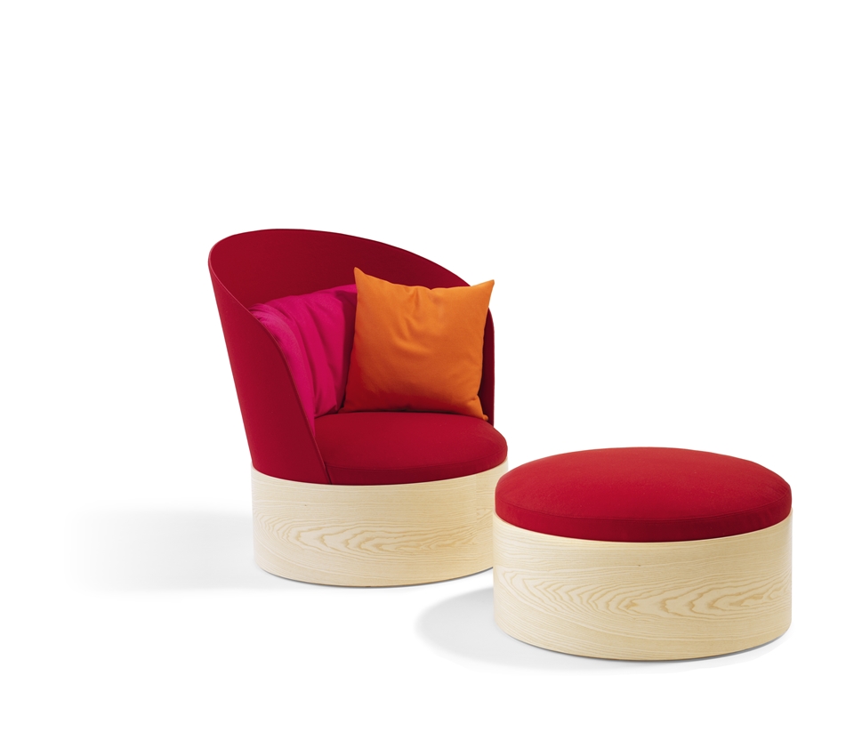 B25 -B25压脚桦木贴面,带烟灰贴面的脚凳。座椅采用聚醚泡沫塑料制成,带有织物或皮革覆盖物。座椅高度400毫米,总高度400毫米,座椅Ø780毫米,重量kg 19,5 。