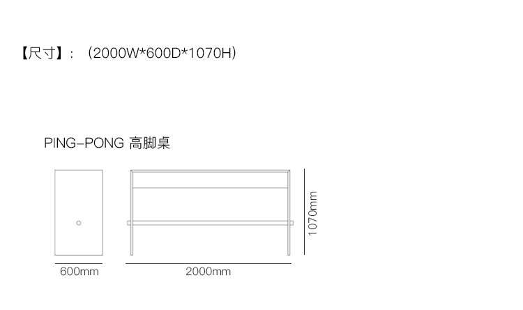 PING-PONG 高脚桌 系列尺寸/示意图